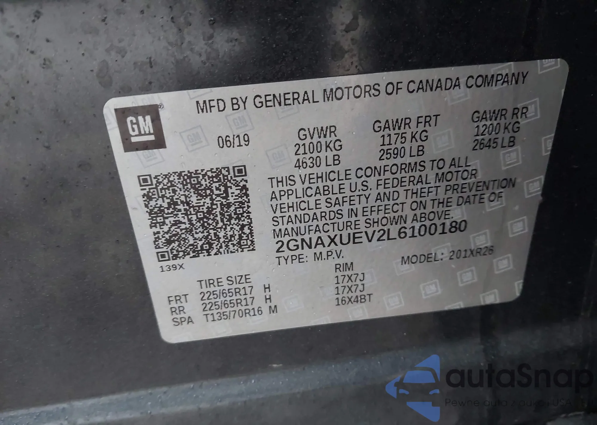 LOT: 43949124 VIN: 1GYKNDRS5HZ112302