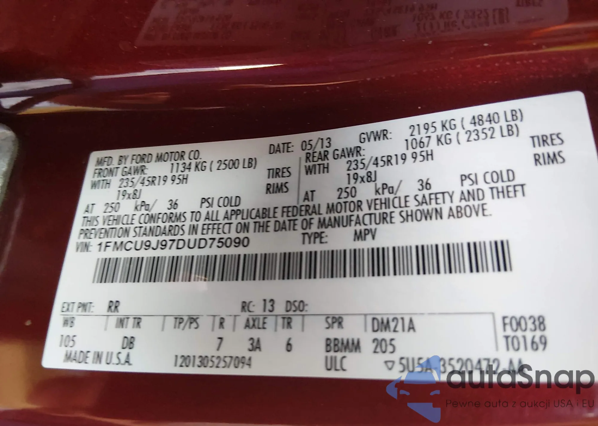 • VIN 1FMCU9J97DUD75090