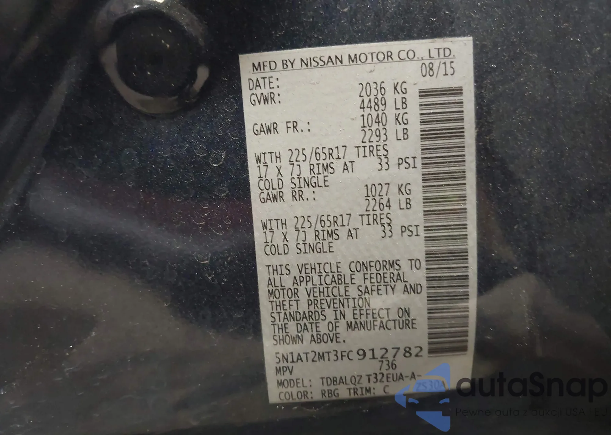 LOT: 44357641 VIN: 5N1AT2MT3FC912782