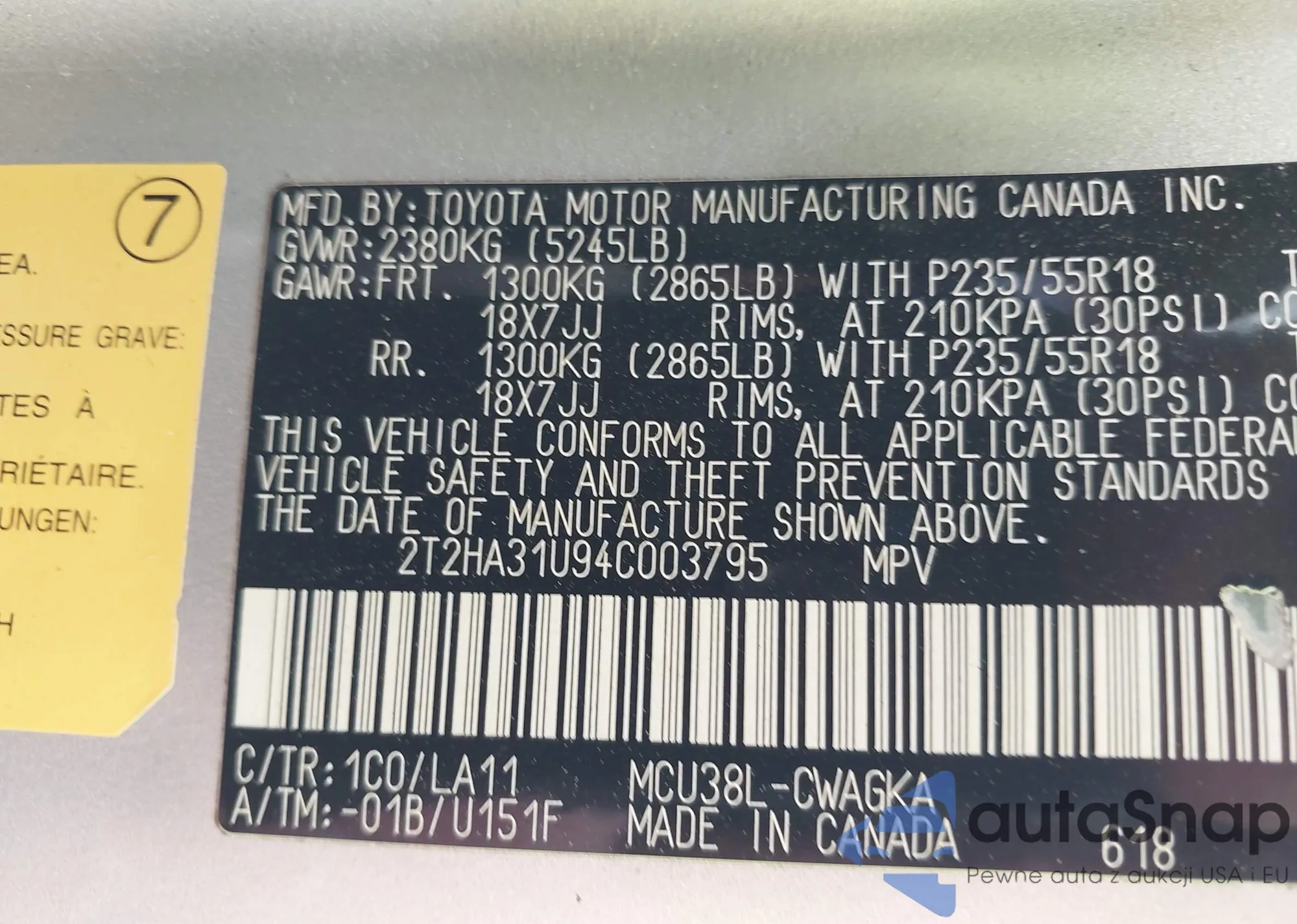 LOT: 44505578 VIN: 2T2HA31U94C003795