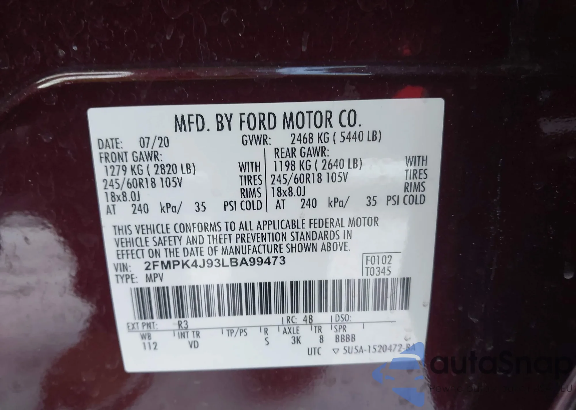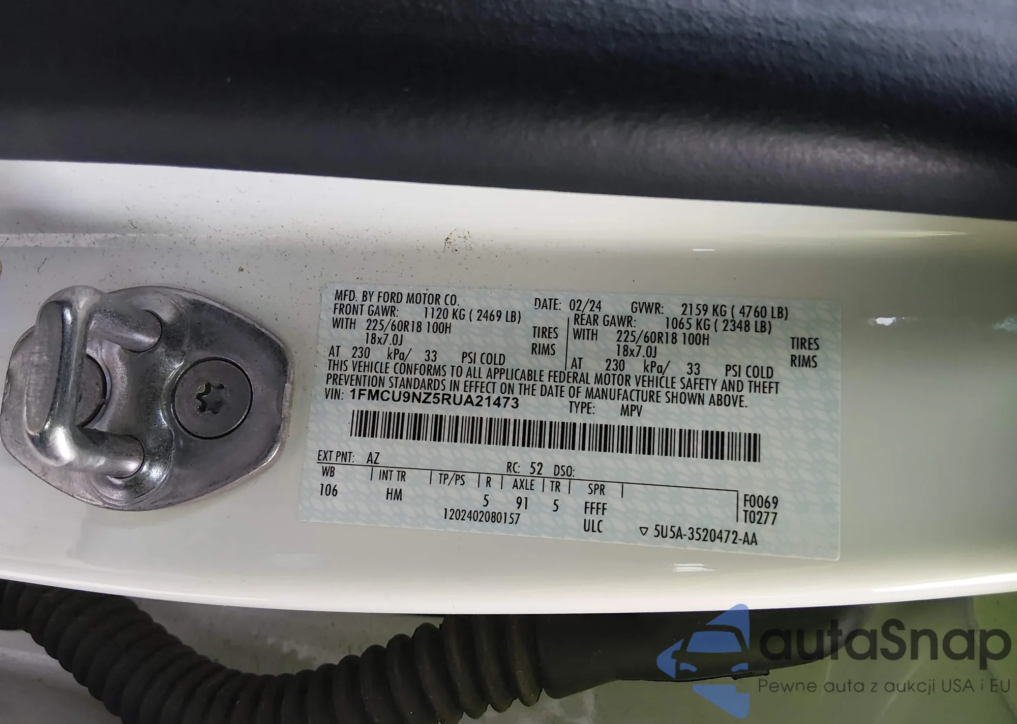 • VIN 1FMCU9NZ5RUA21473
