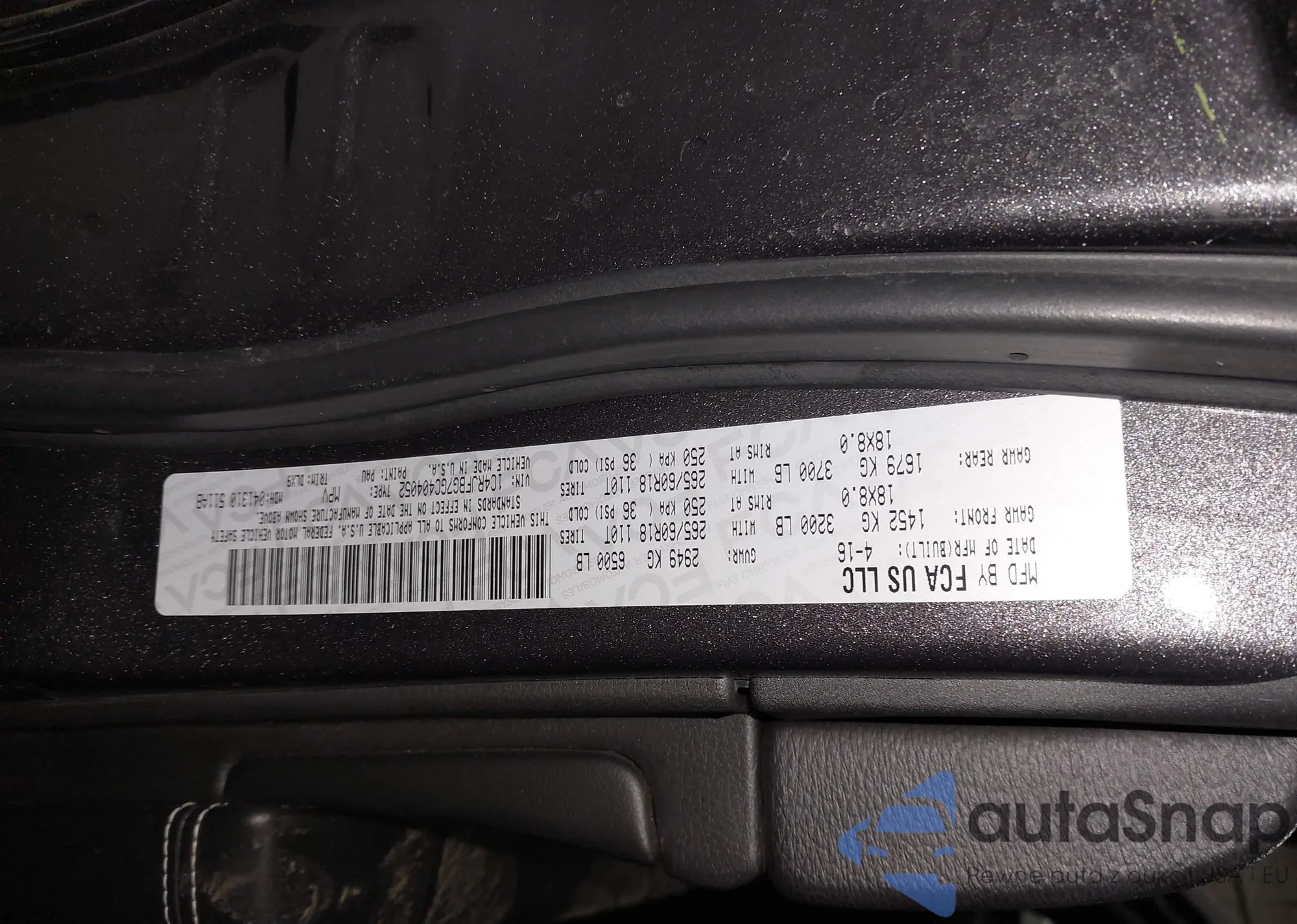 • VIN 1C4RJFBG7GC404052