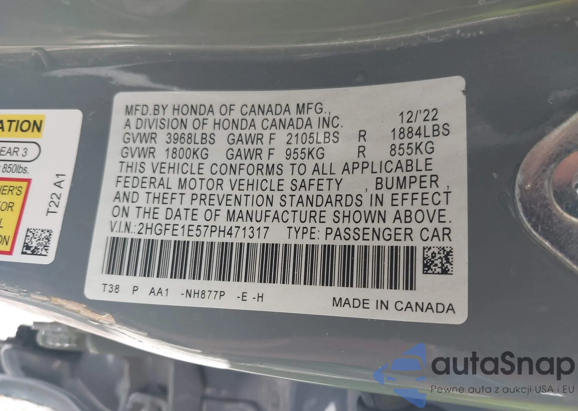 • VIN 2HGFE1E57PH471317