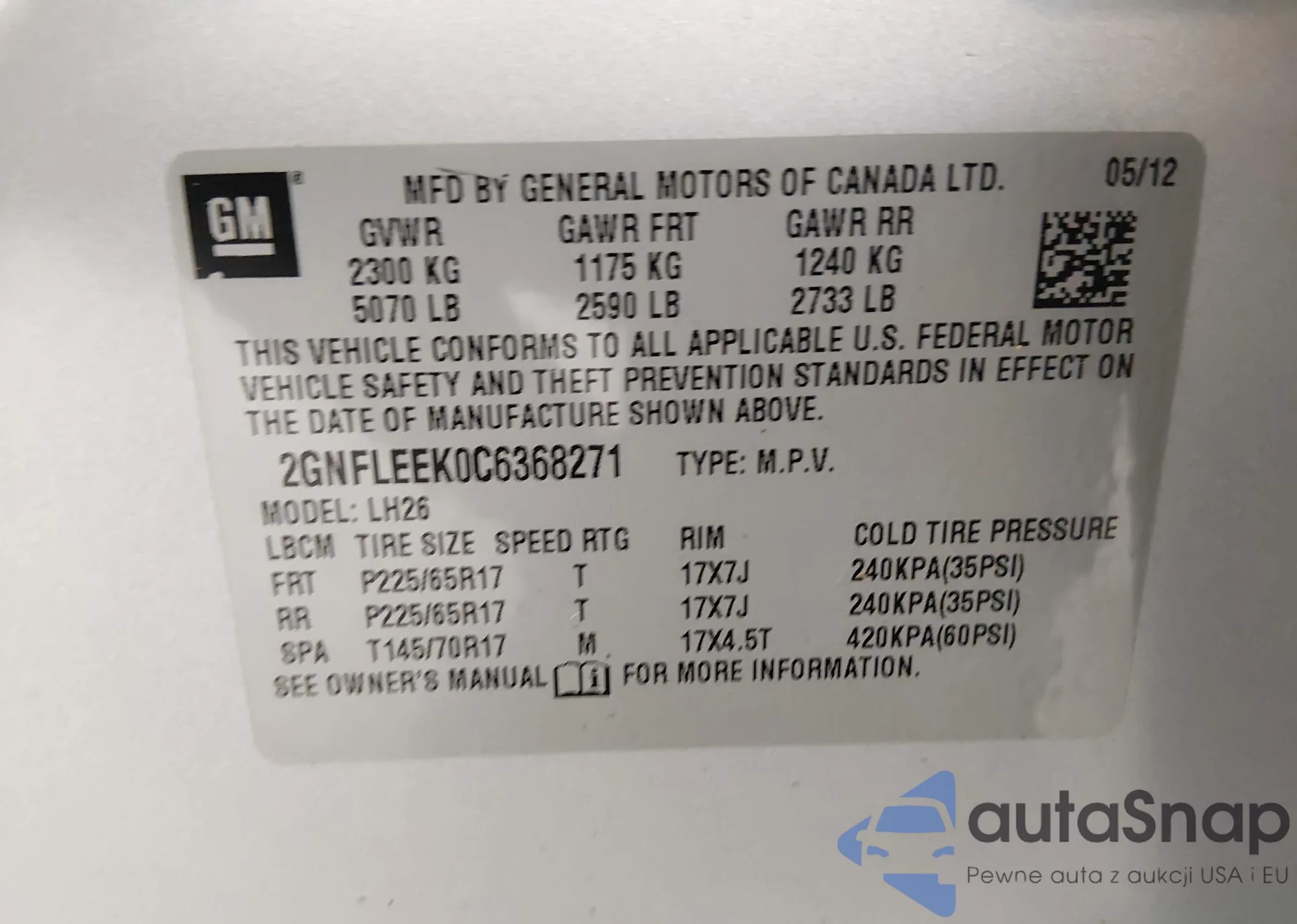 • VIN 2GNFLEEK0C6368271