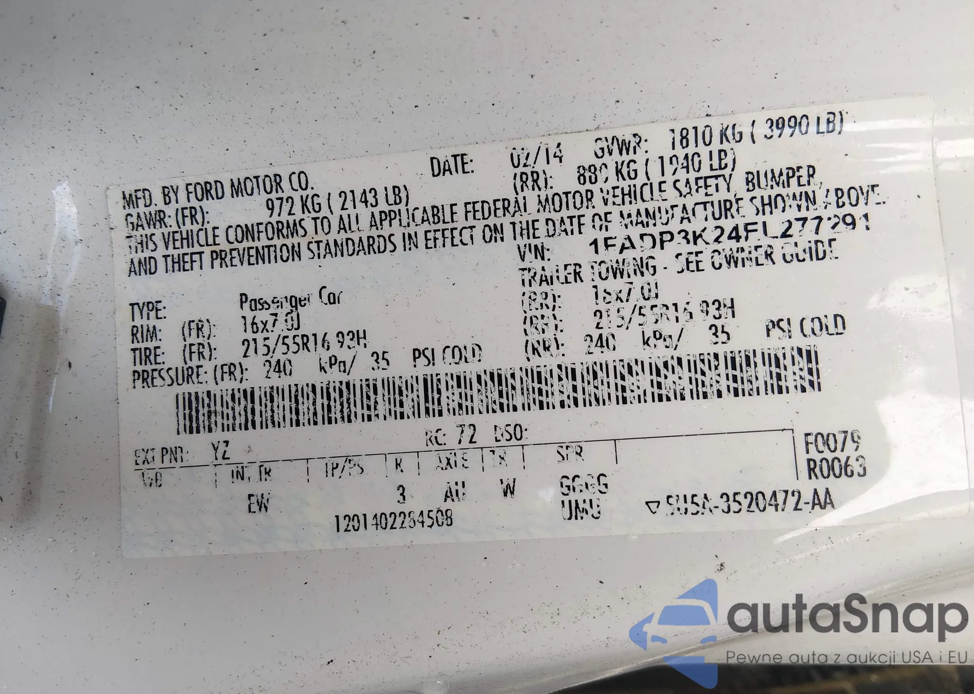 • VIN 1FADP3K24EL277291