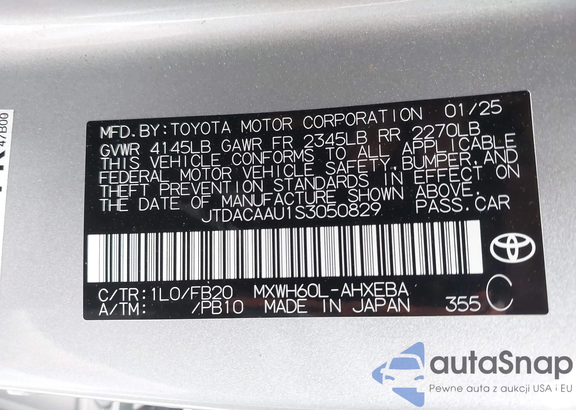 LOT: 43920641 VIN: JTDACAAU1S3050829