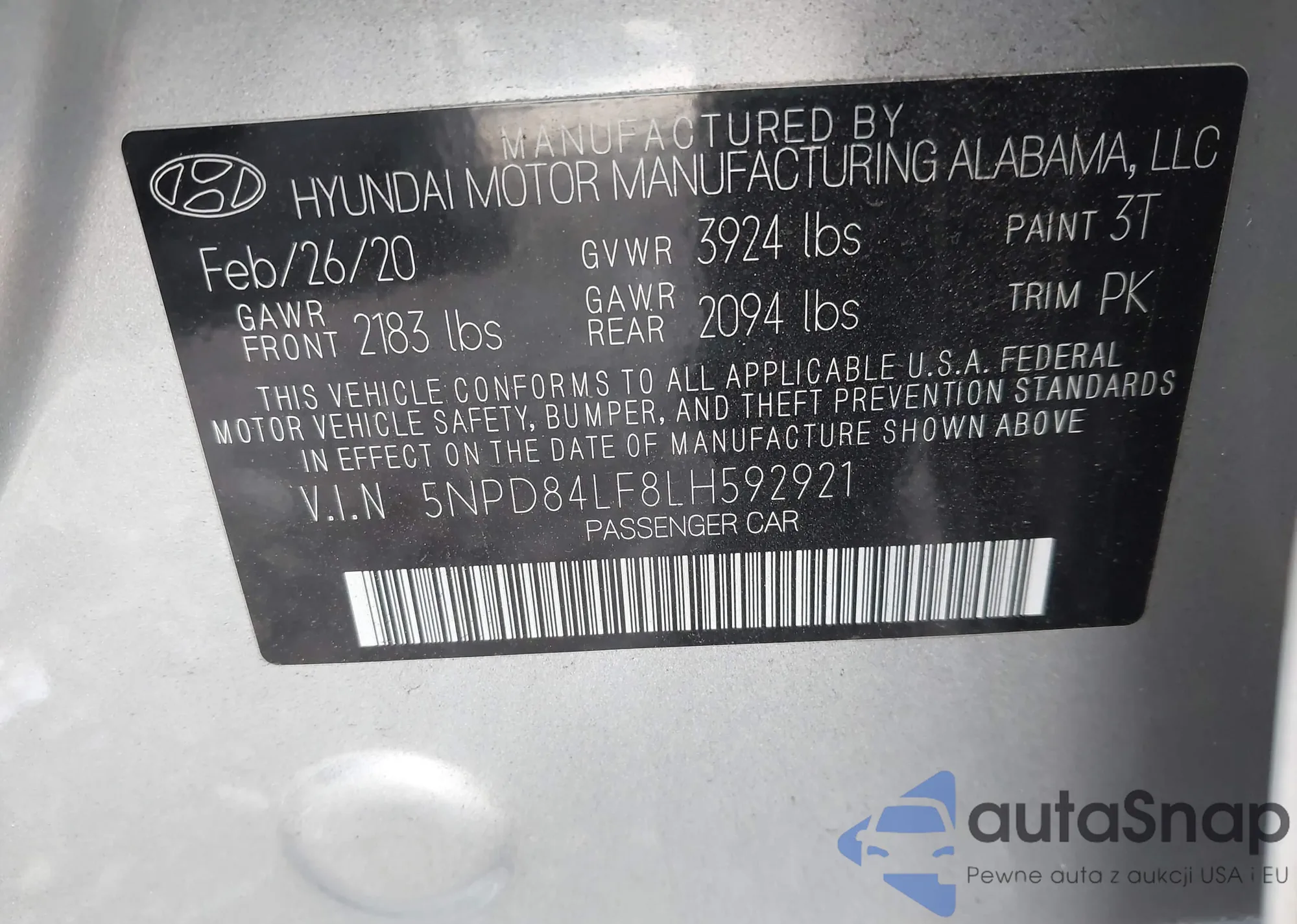• VIN 5NPD84LF8LH592921