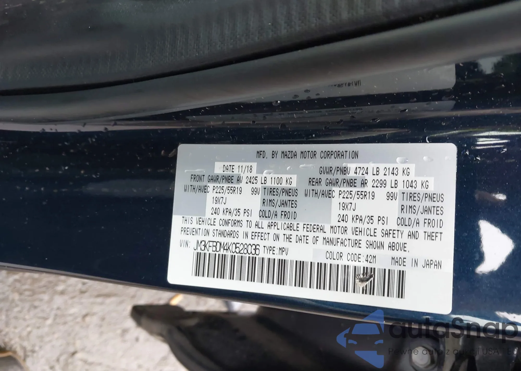 LOT: 44387152 VIN: JM3KFBDM4K0528036