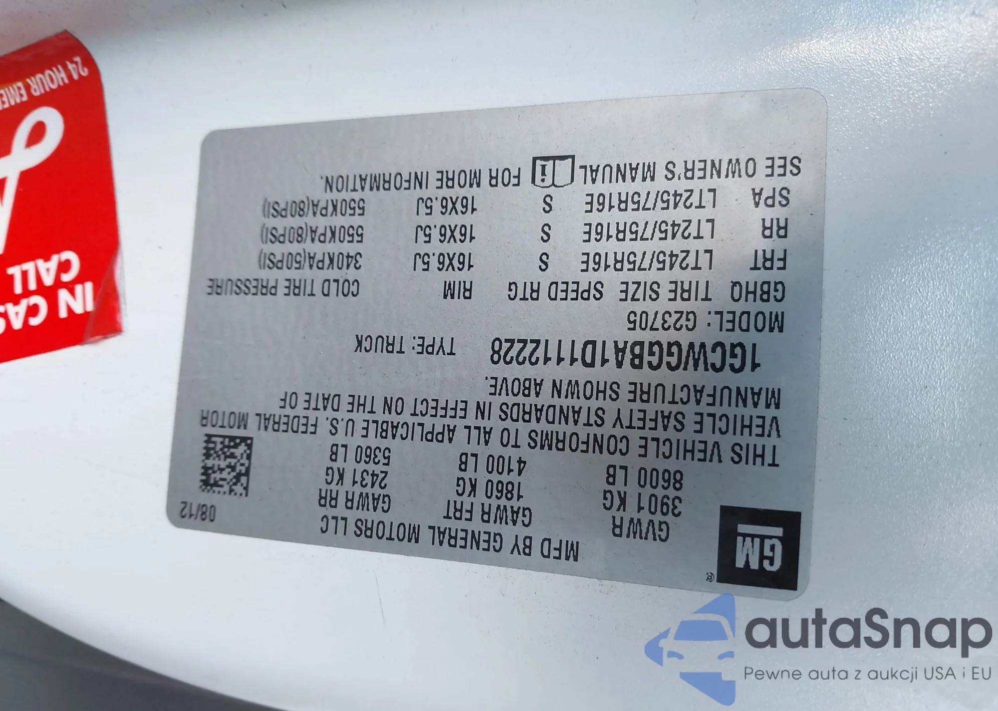 • VIN 1GCWGGBA1D1112228