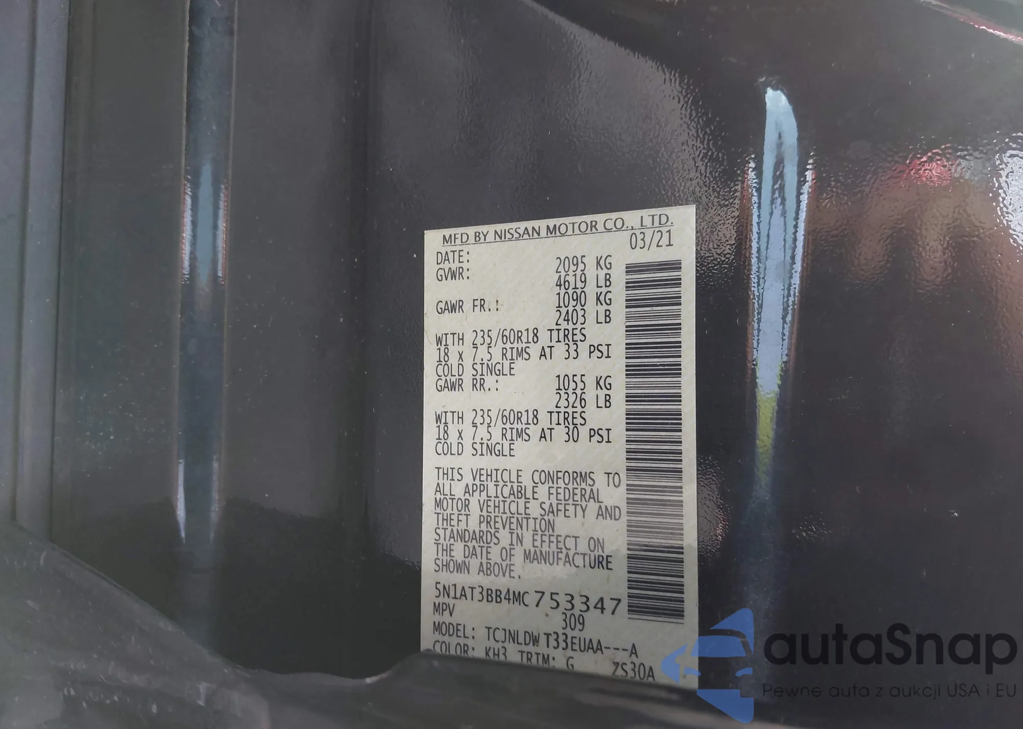 • VIN 5N1AT3BB4MC753347