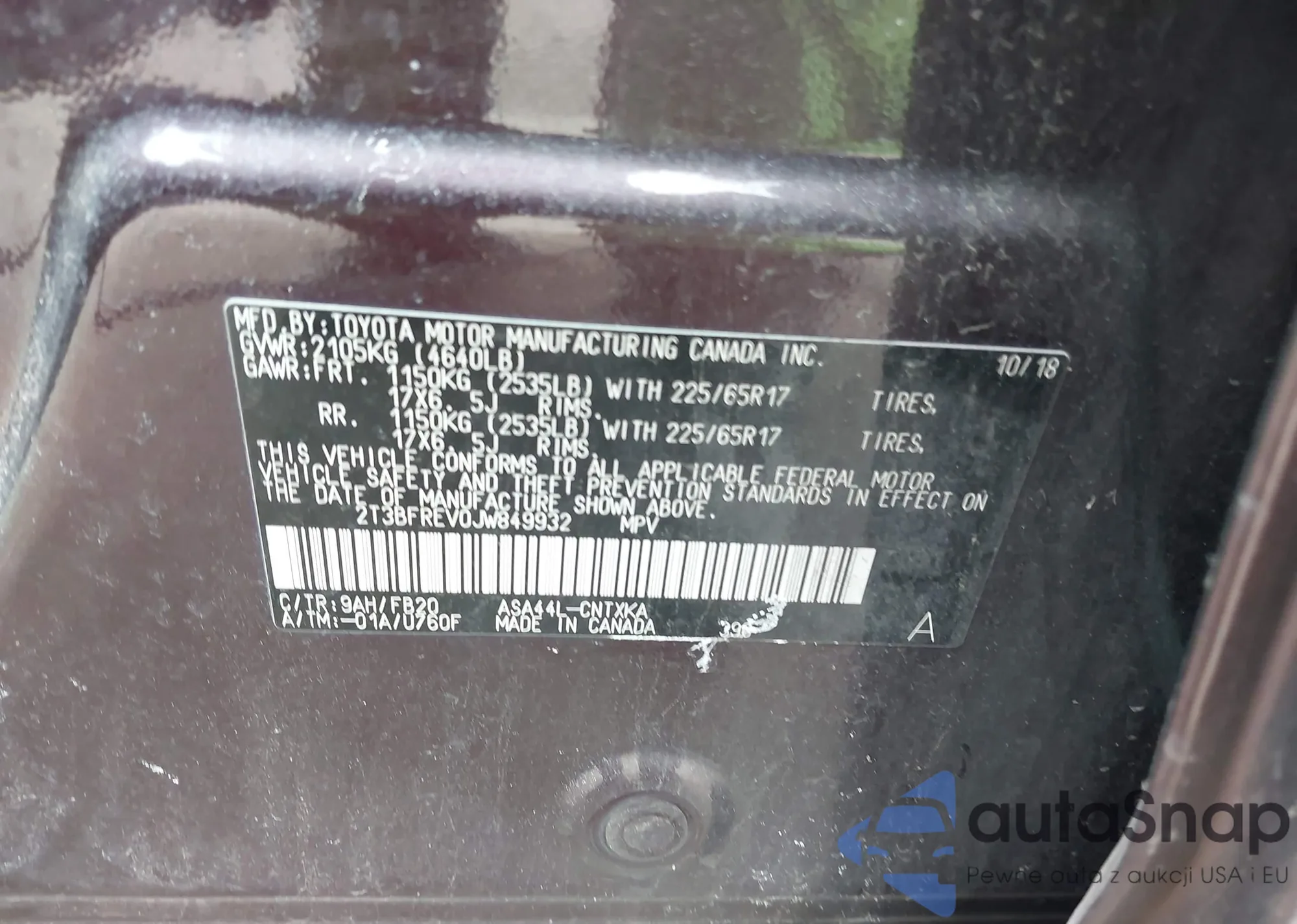 • VIN 2T3BFREV0JW849932
