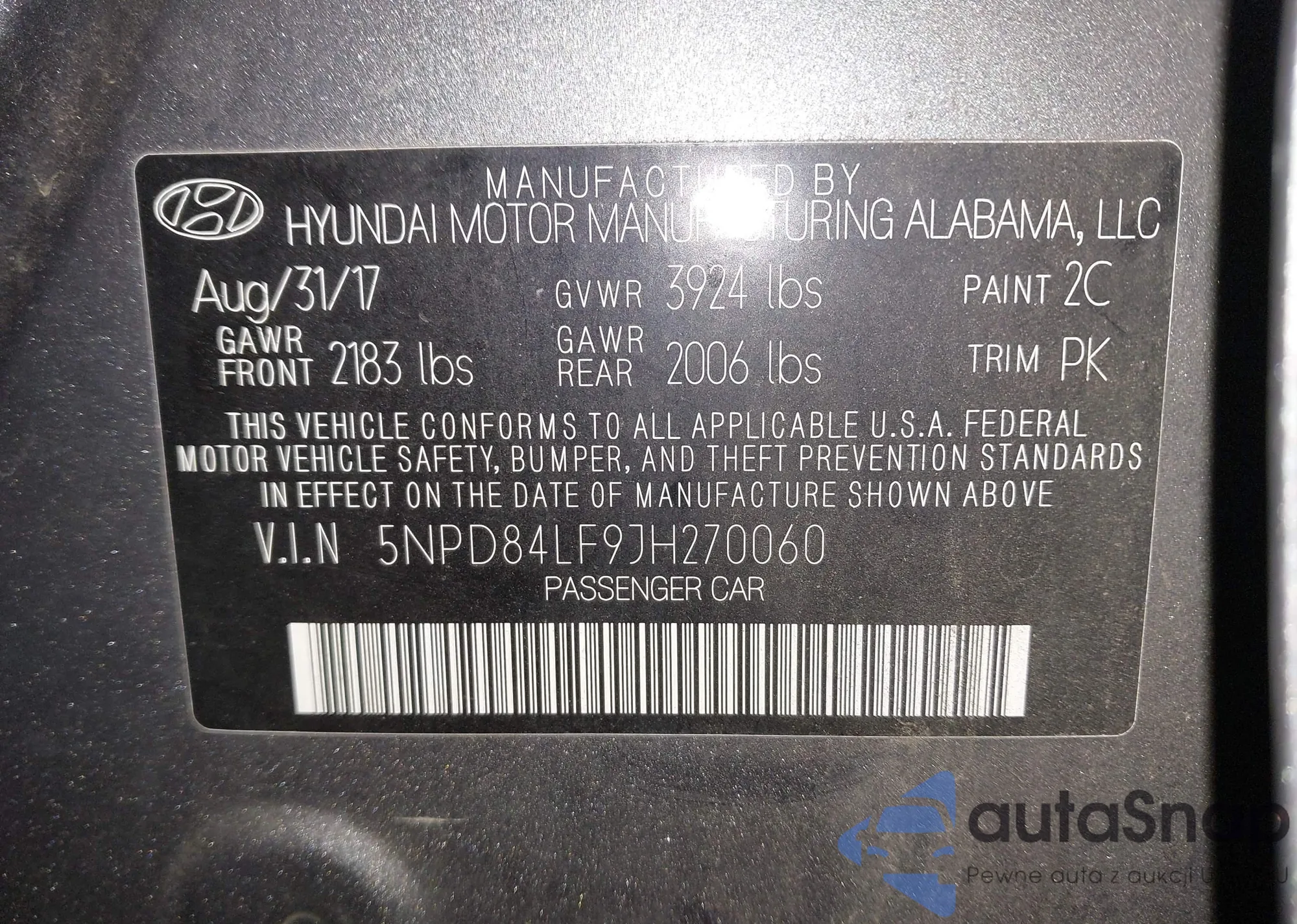 • VIN 5NPD84LF9JH270060