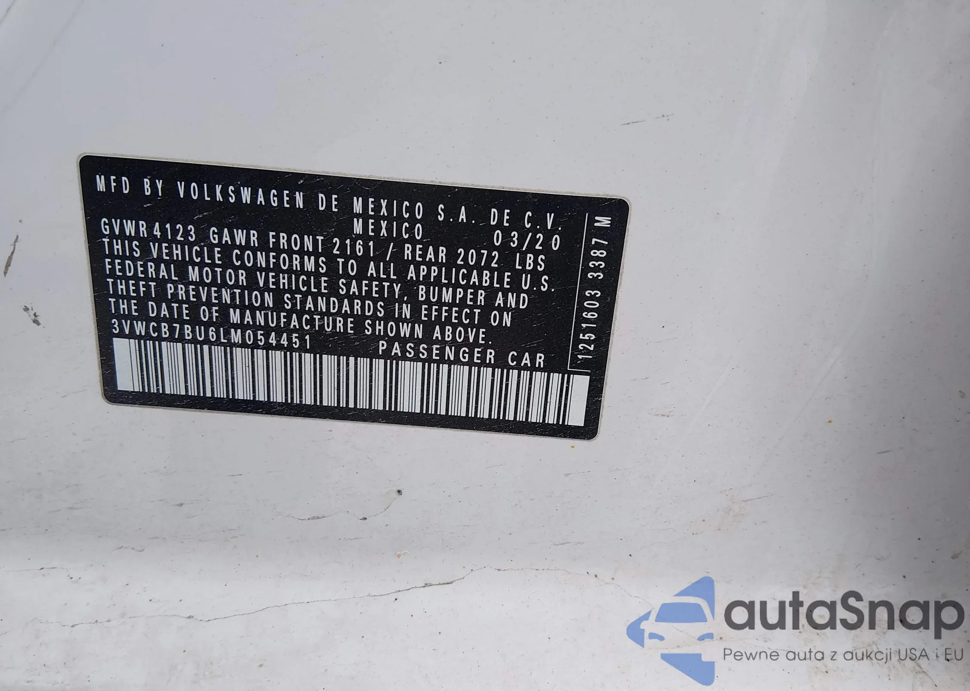 • VIN 3VWCB7BU6LM054451