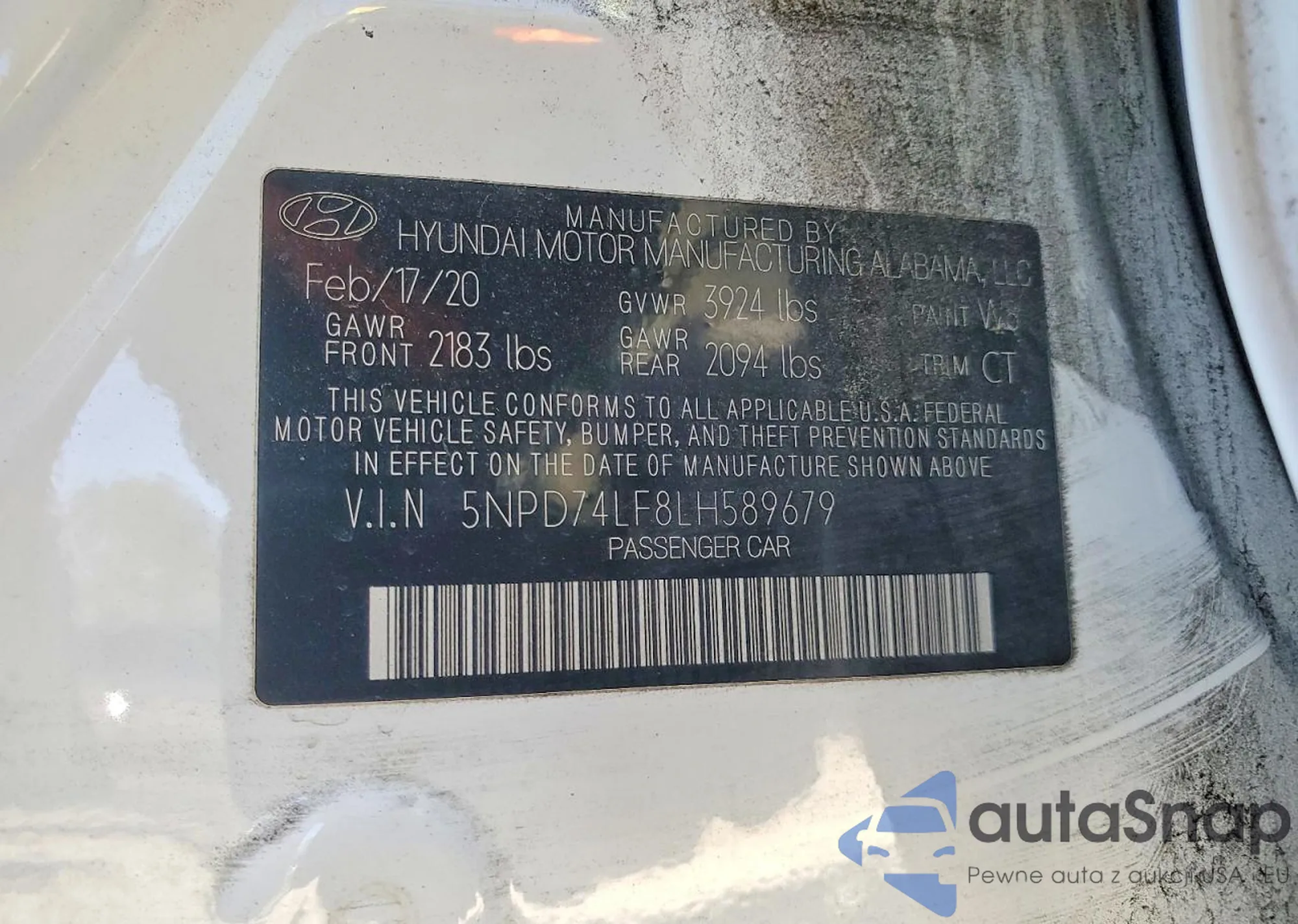 LOT: 54066194 VIN: KMHCT4AE3HU275576