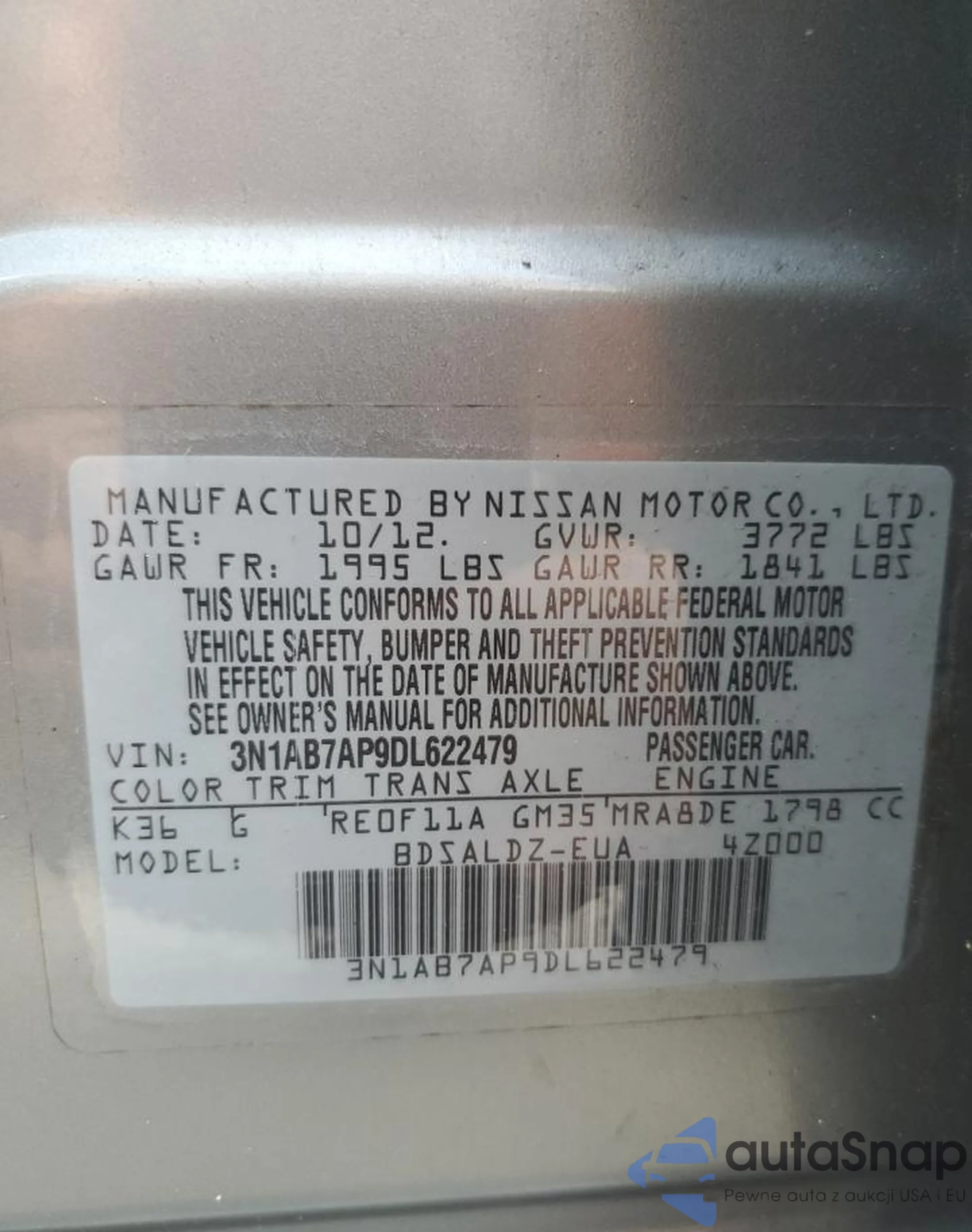 • VIN 3N1AB7AP9DL622479