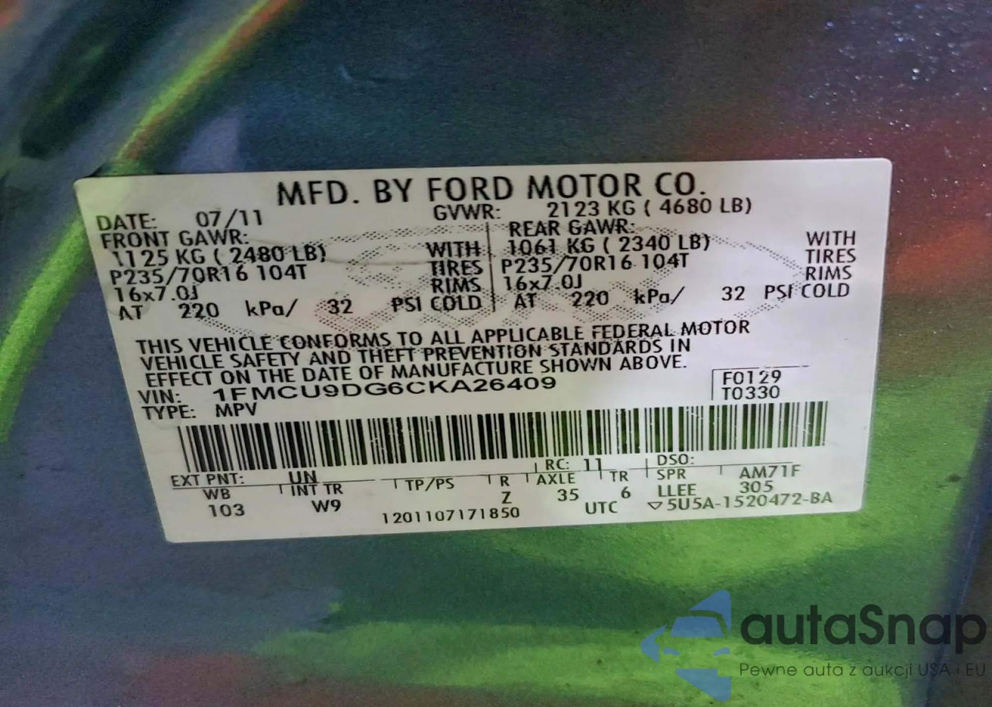 LOT: 97630475 VIN: 1FMCU9DG6CKA26409