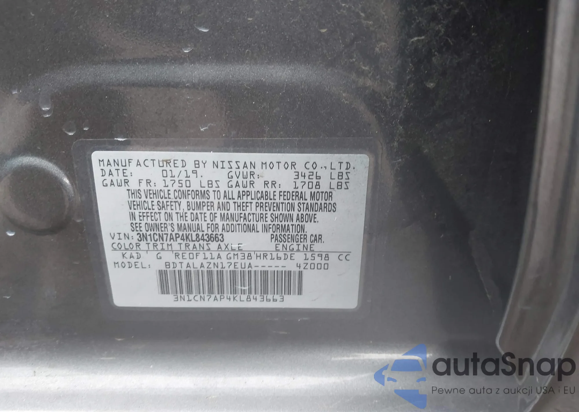 • Lot number 43815828