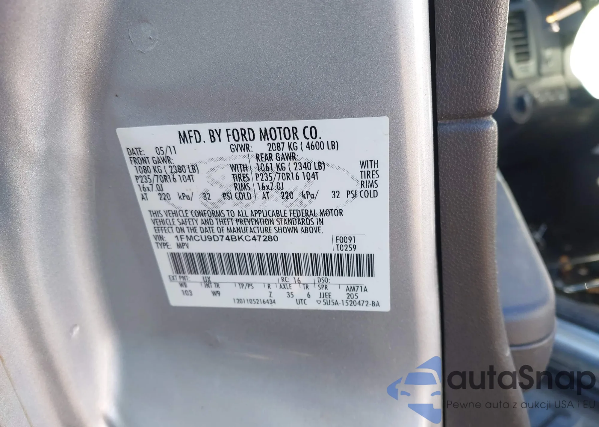 LOT: 43815828 VIN: 1FMCU9D74BKC47280