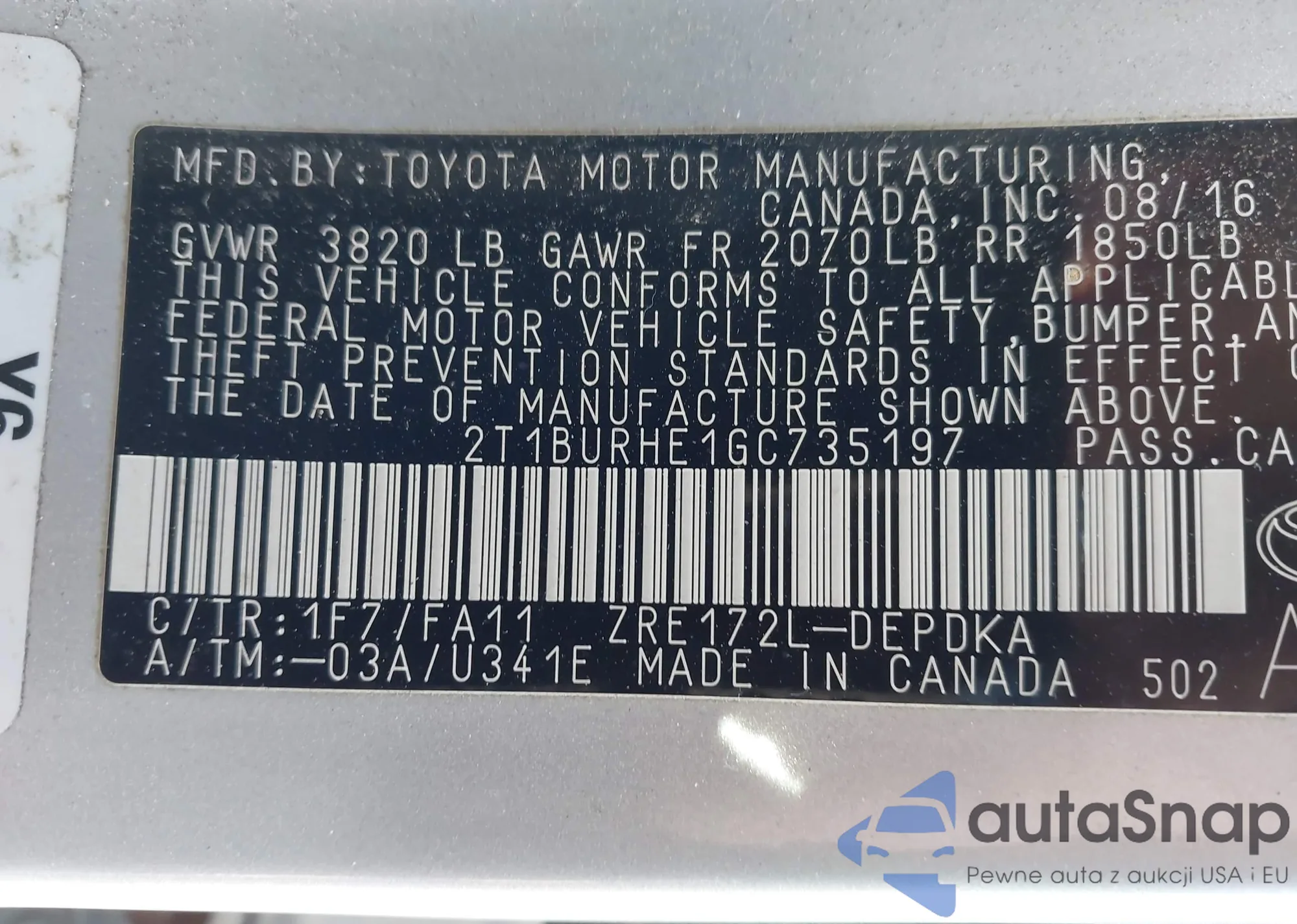 • VIN 2T1BURHE1GC735197