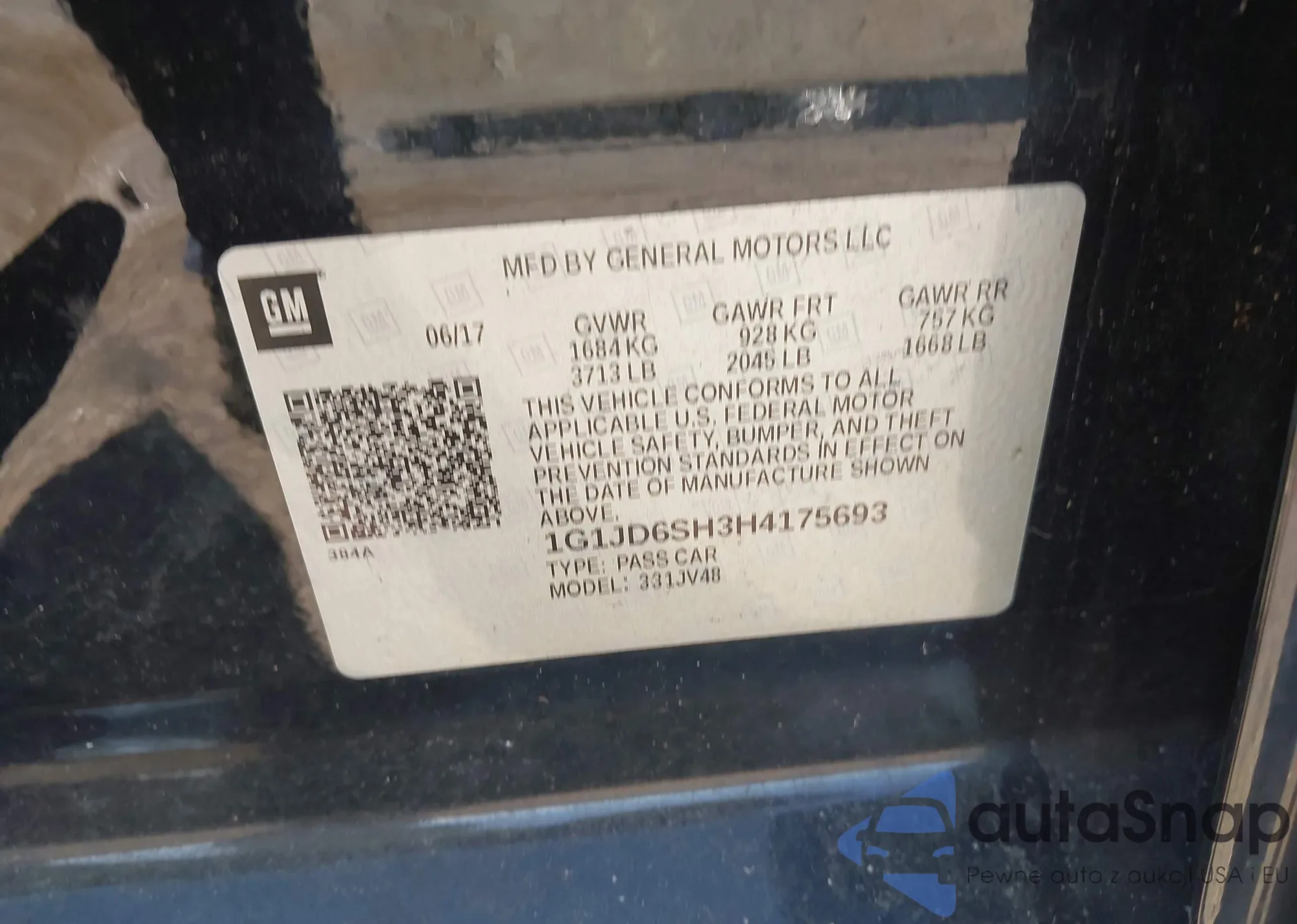 • VIN 1G1JD6SH3H4175693