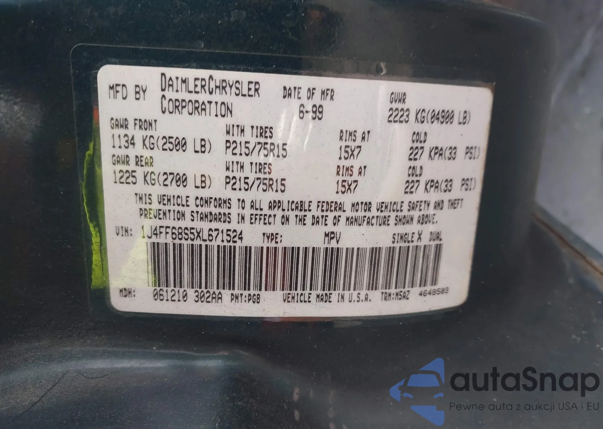 • VIN 1C4JJXFM6MW852800