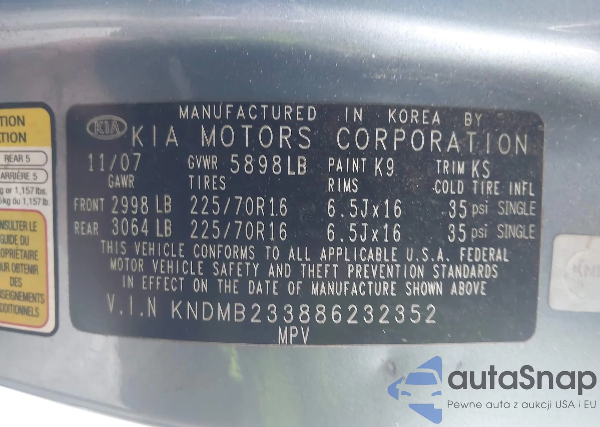 LOT: 44202251 VIN: KNDJ23AU3M7143555