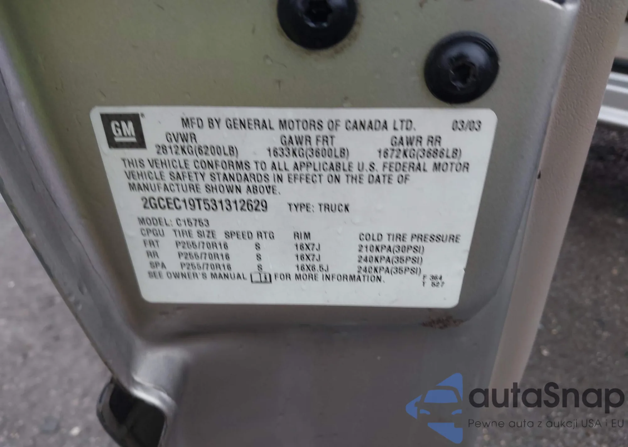 • VIN 2GCEC19T531312629