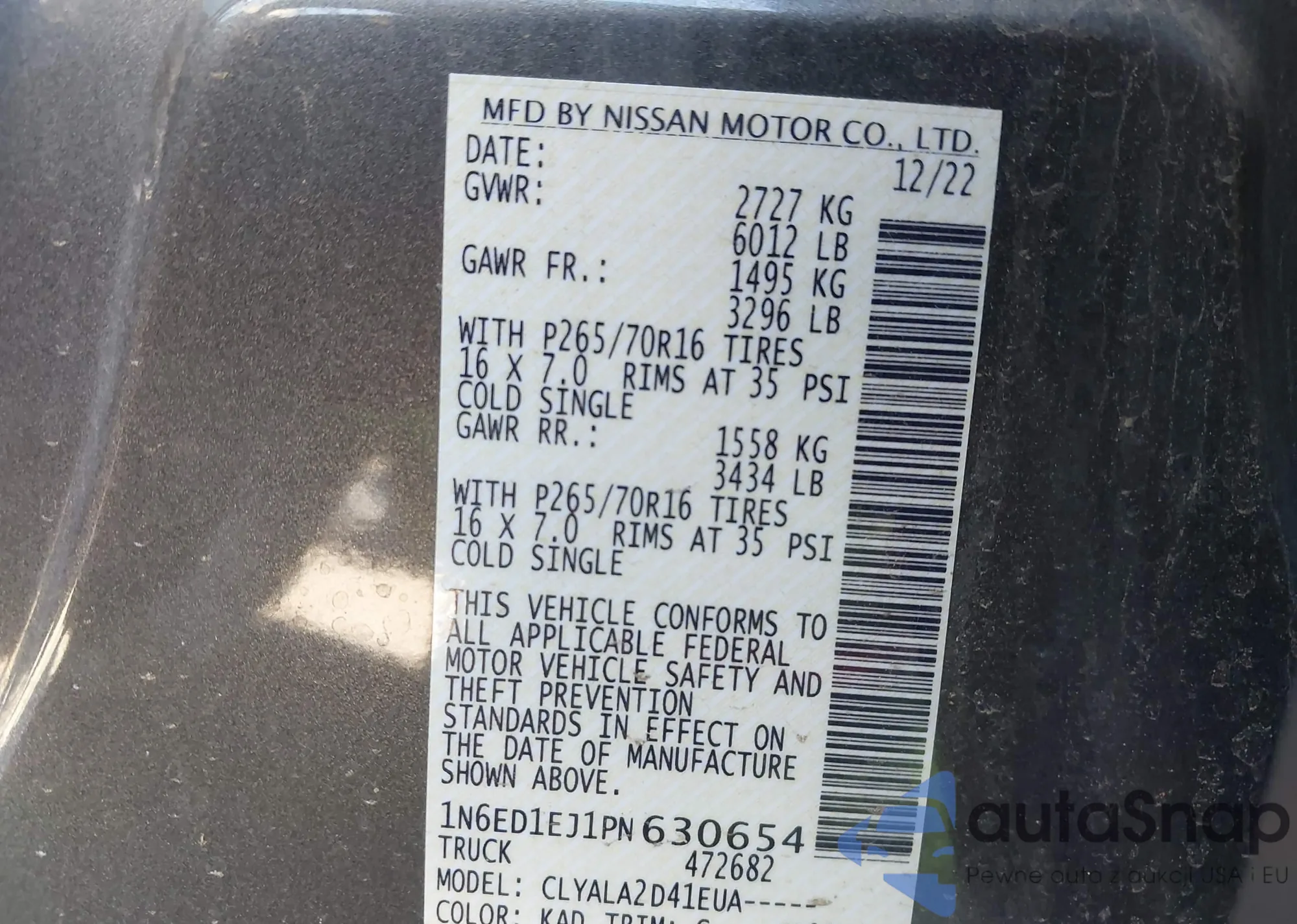 • VIN 1N6ED1EJ1PN630654