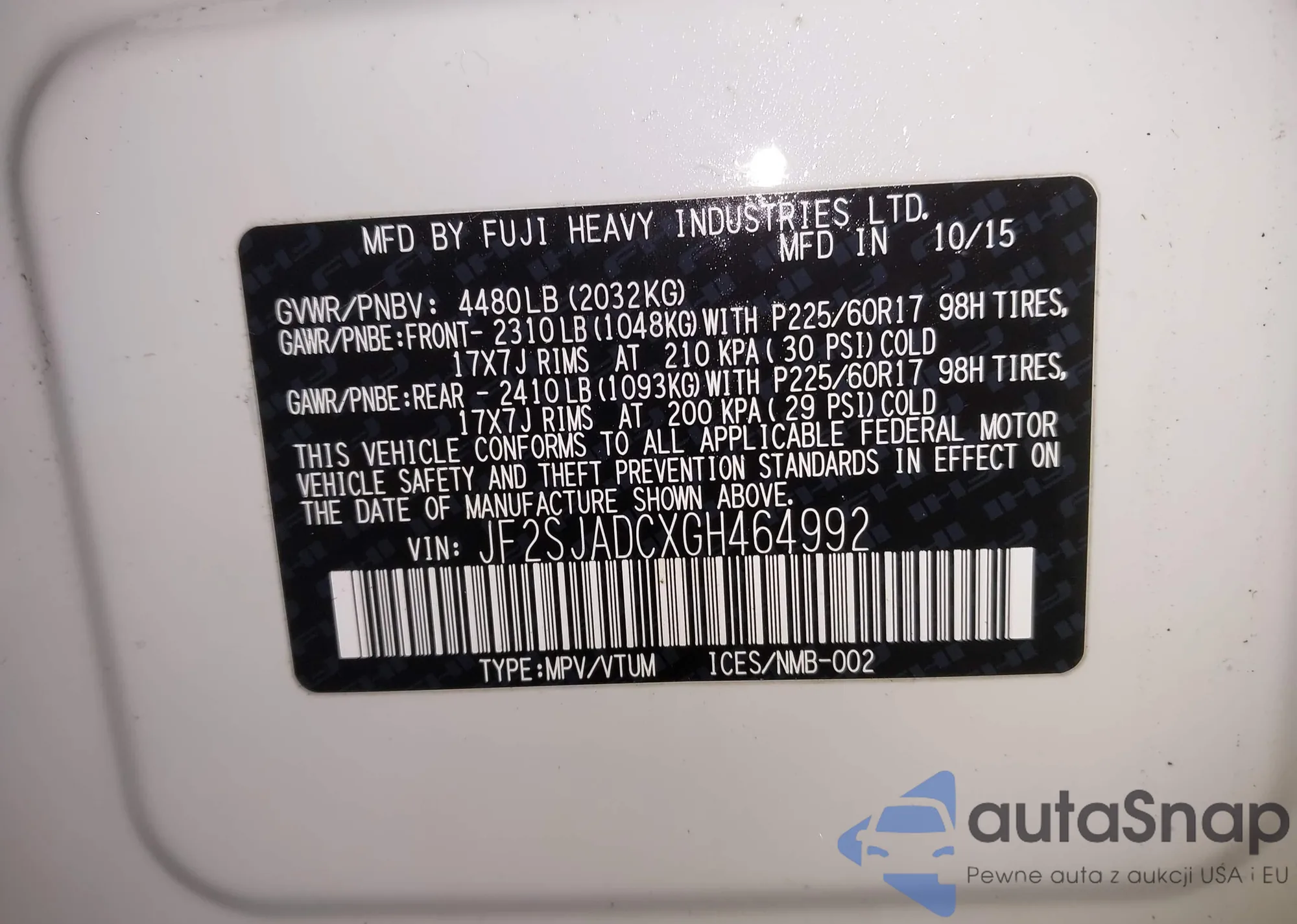 • VIN JF2SJADCXGH464992