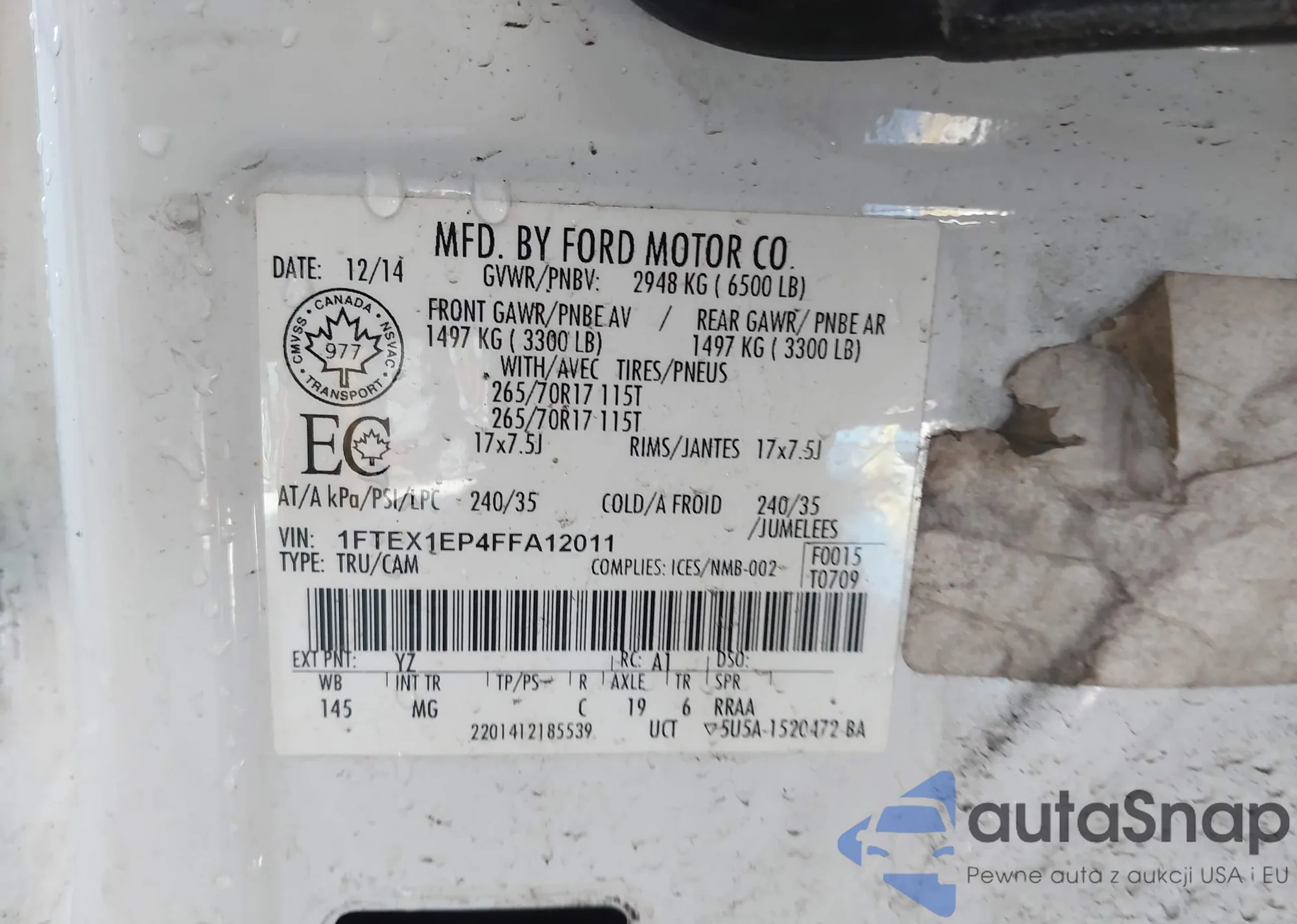 LOT: 44451980 VIN: 1FTEX1EP4FFA12011