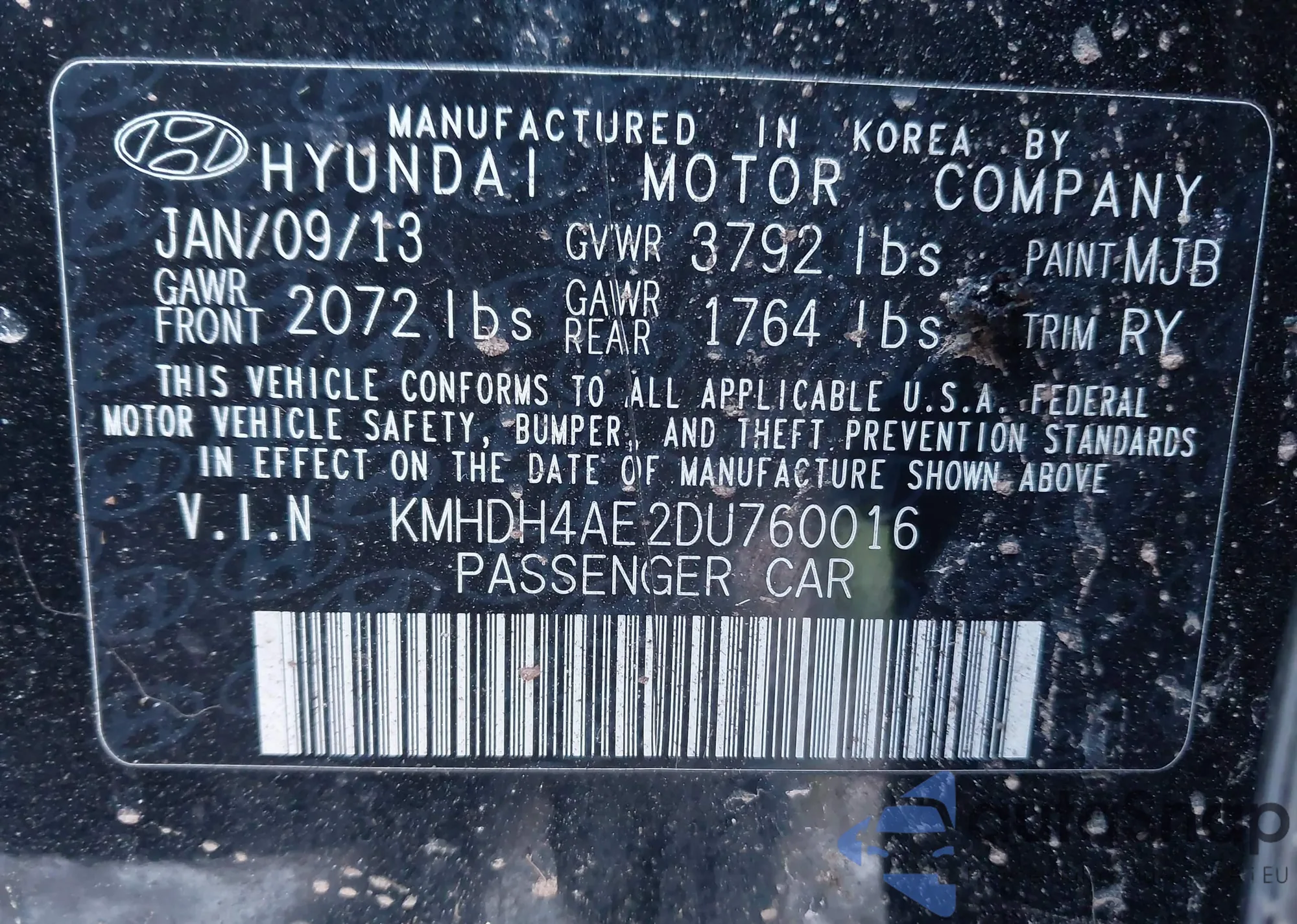 LOT: 44048894 VIN: KMHDH4AE2DU760016