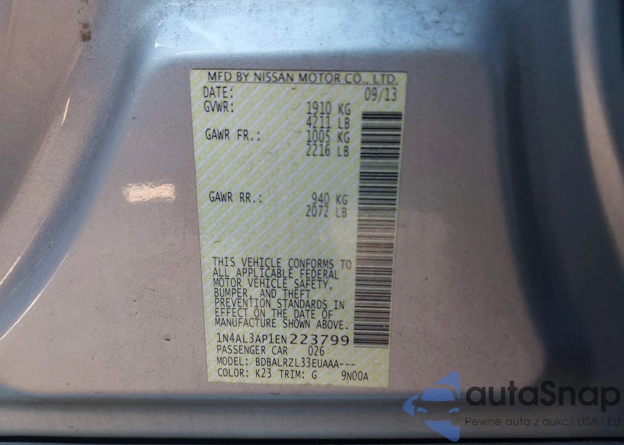 • VIN 1N4AL3AP1EN223799