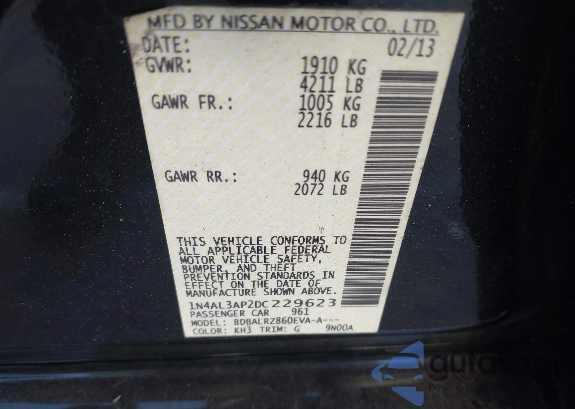 LOT: 44135201 VIN: 5NPEC4AC9BH268998