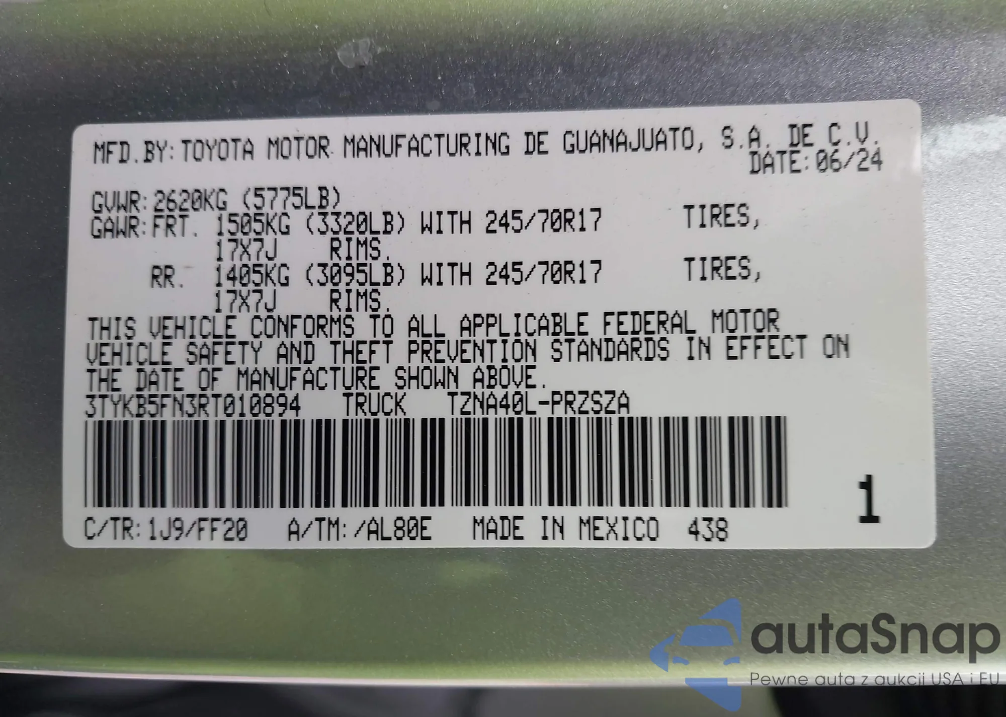 • VIN 5TDEBRCH2MS036474