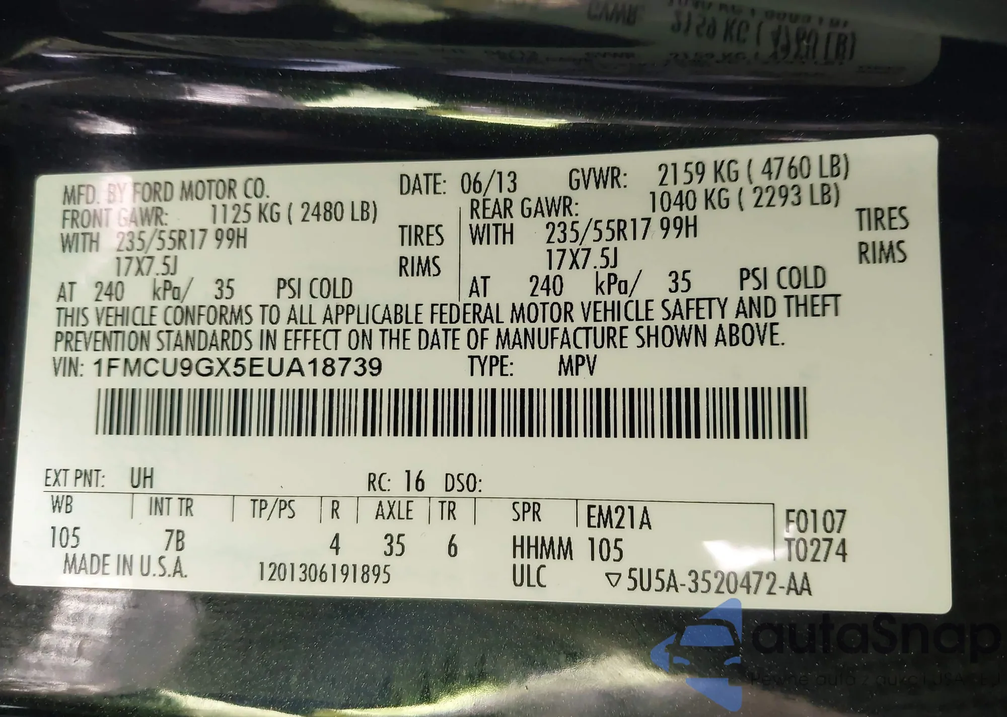 • VIN 1FMCU9GX5EUA18739
