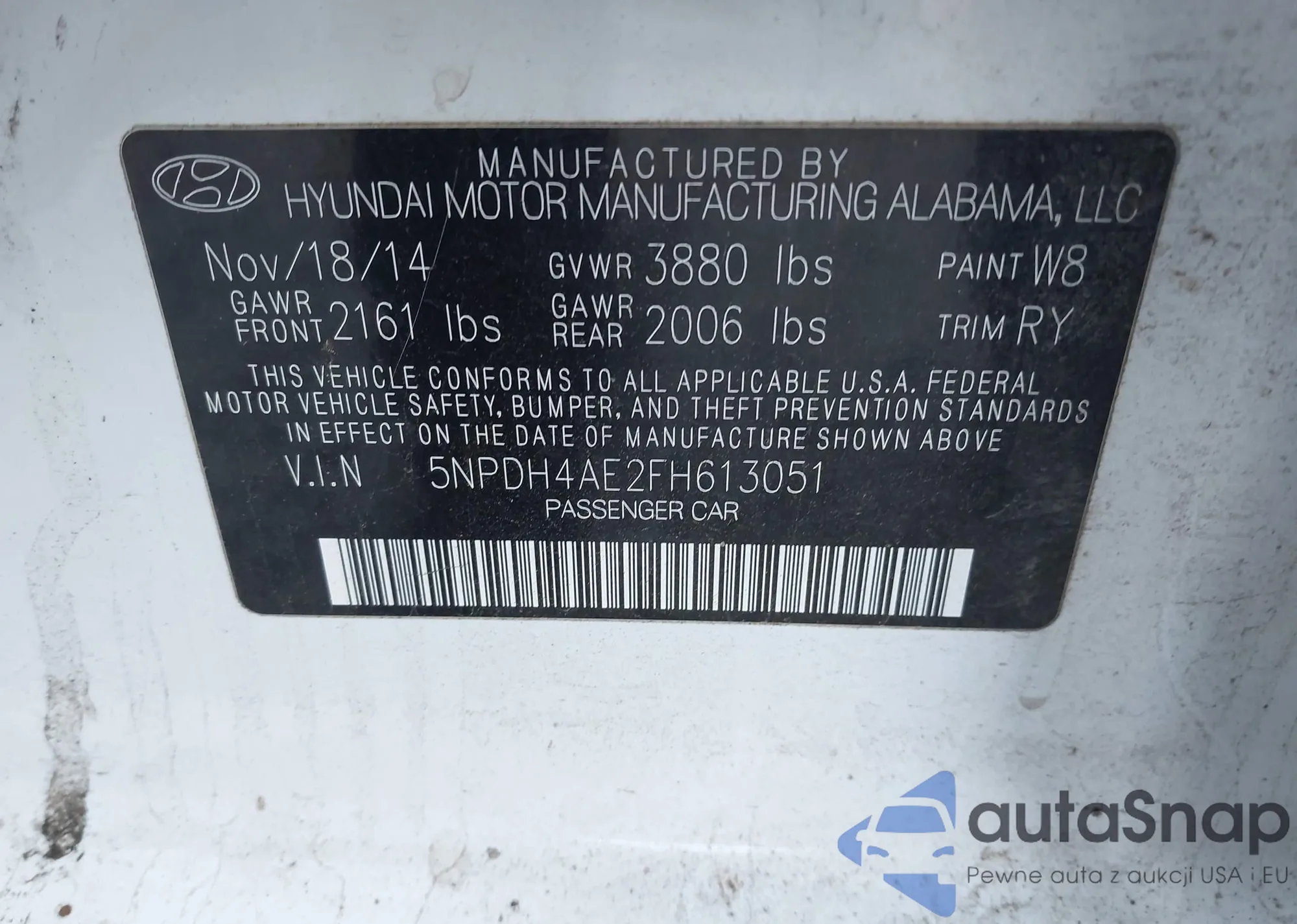 • VIN 5NPDH4AE2FH613051