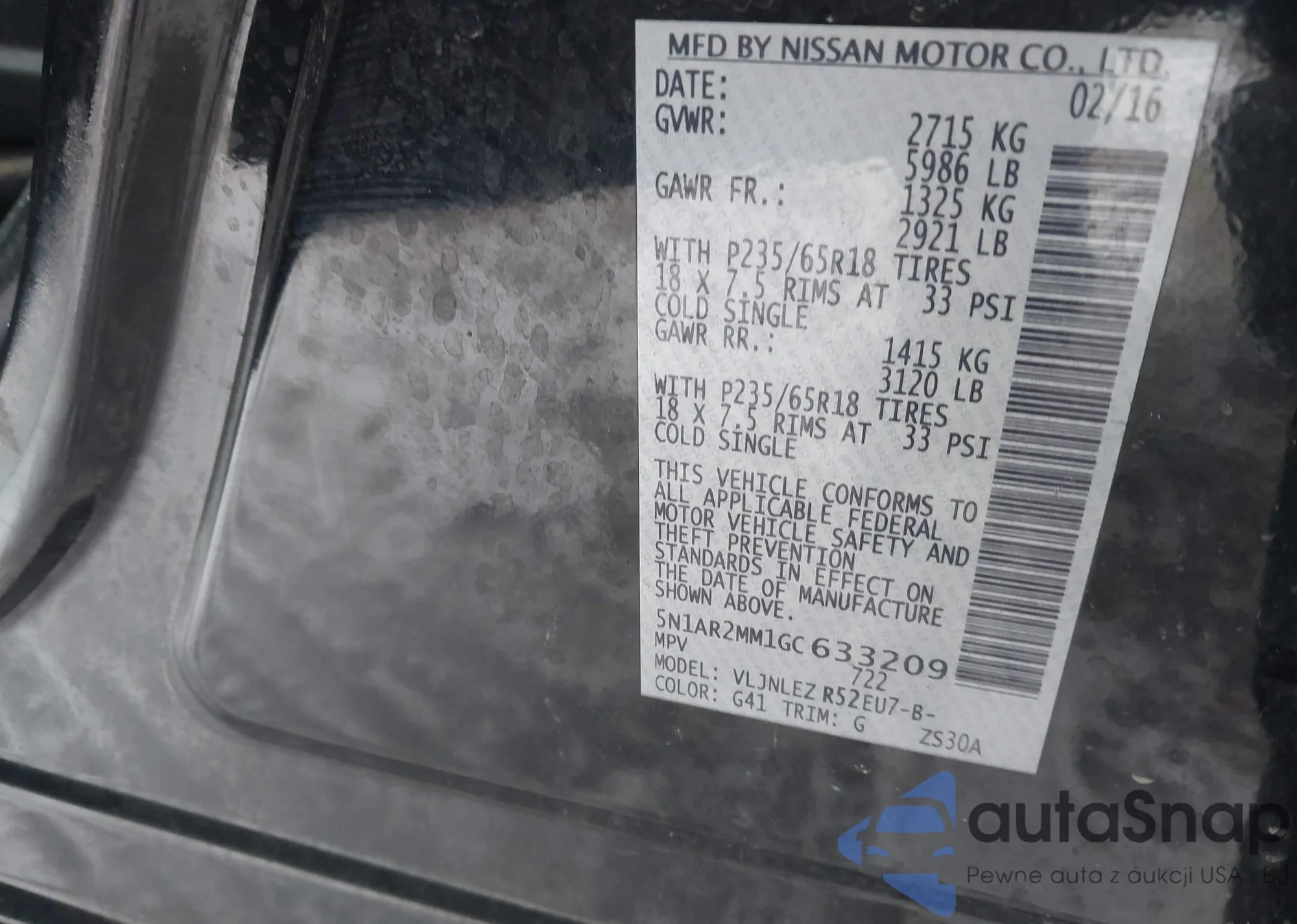 LOT: 44458947 VIN: 5N1AR2MM1GC633209