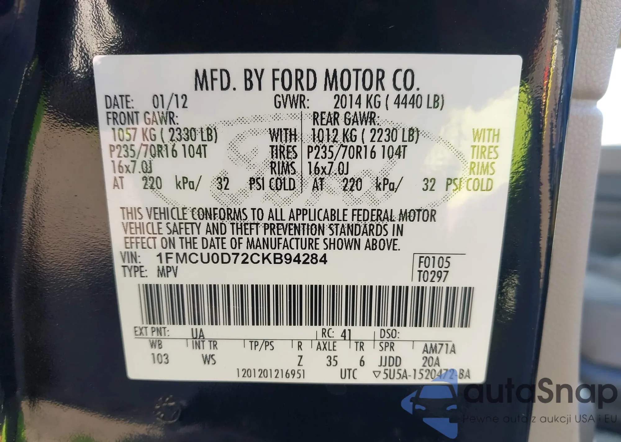 • VIN 1FMCU0D72CKB94284