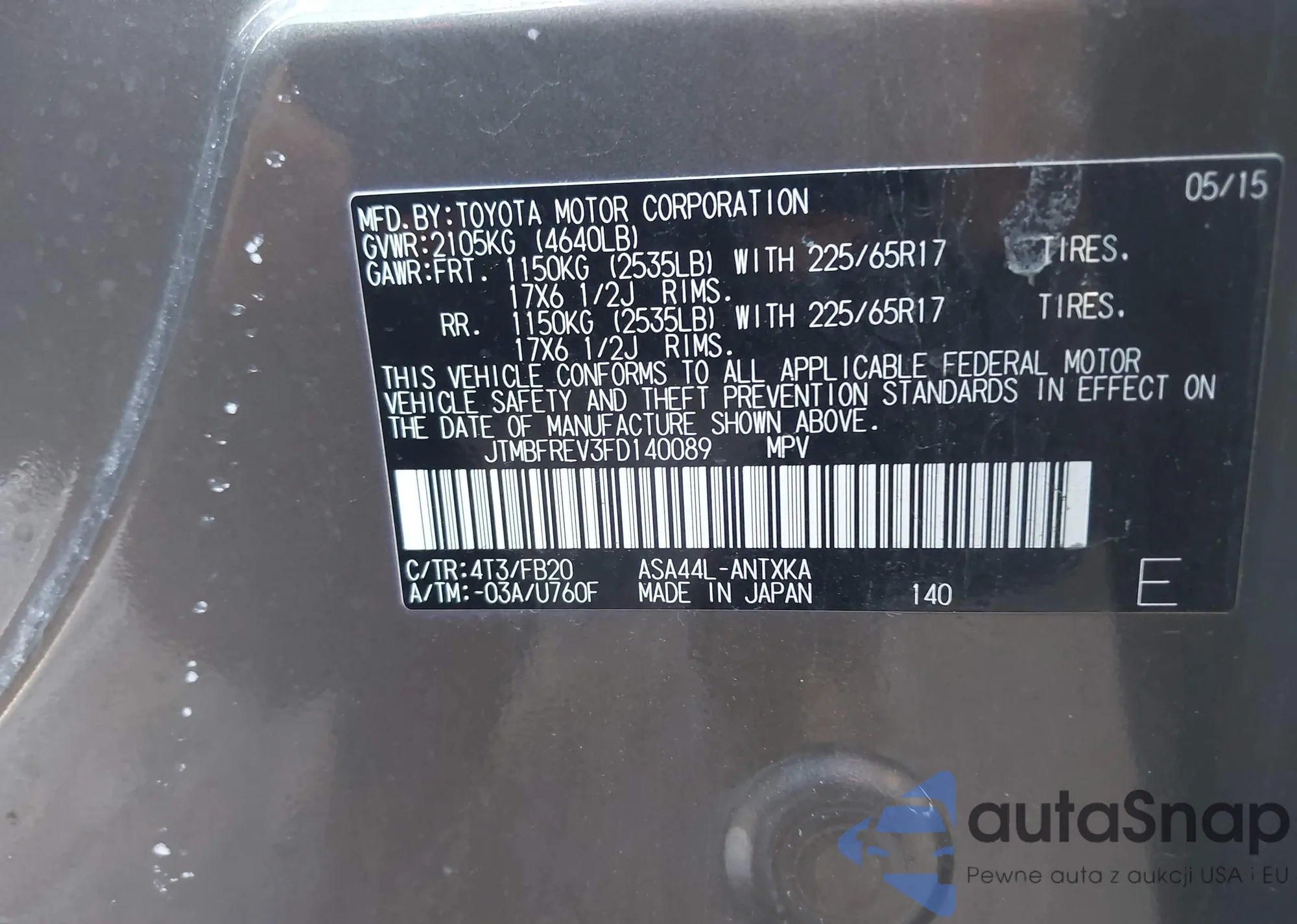 • VIN JTMBFREV3FD140089