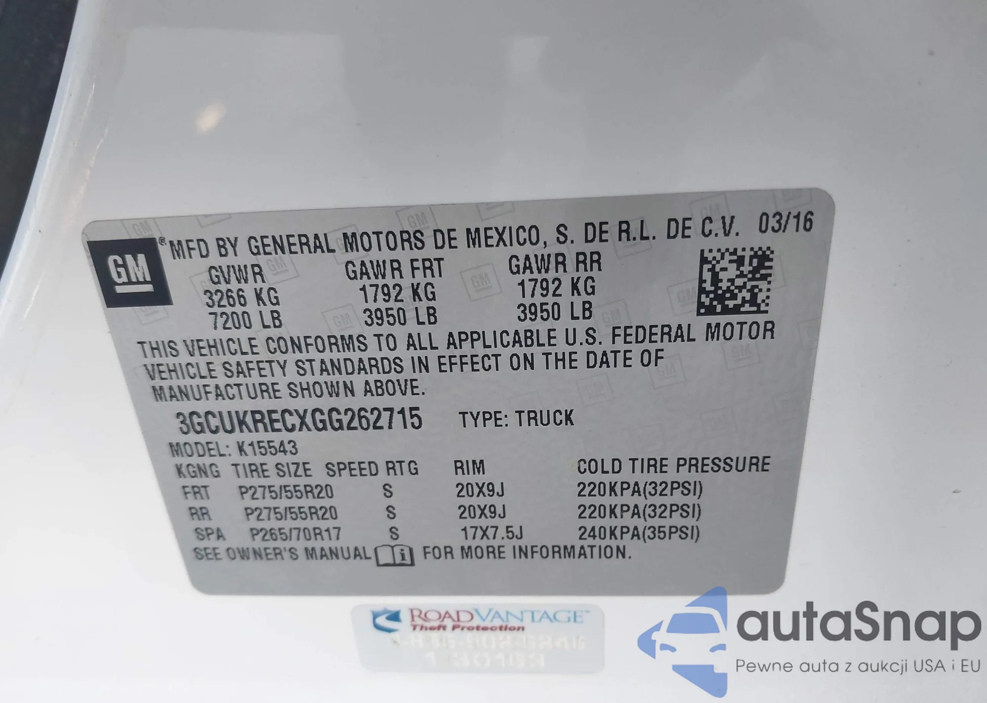 • VIN 3GCUKRECXGG262715