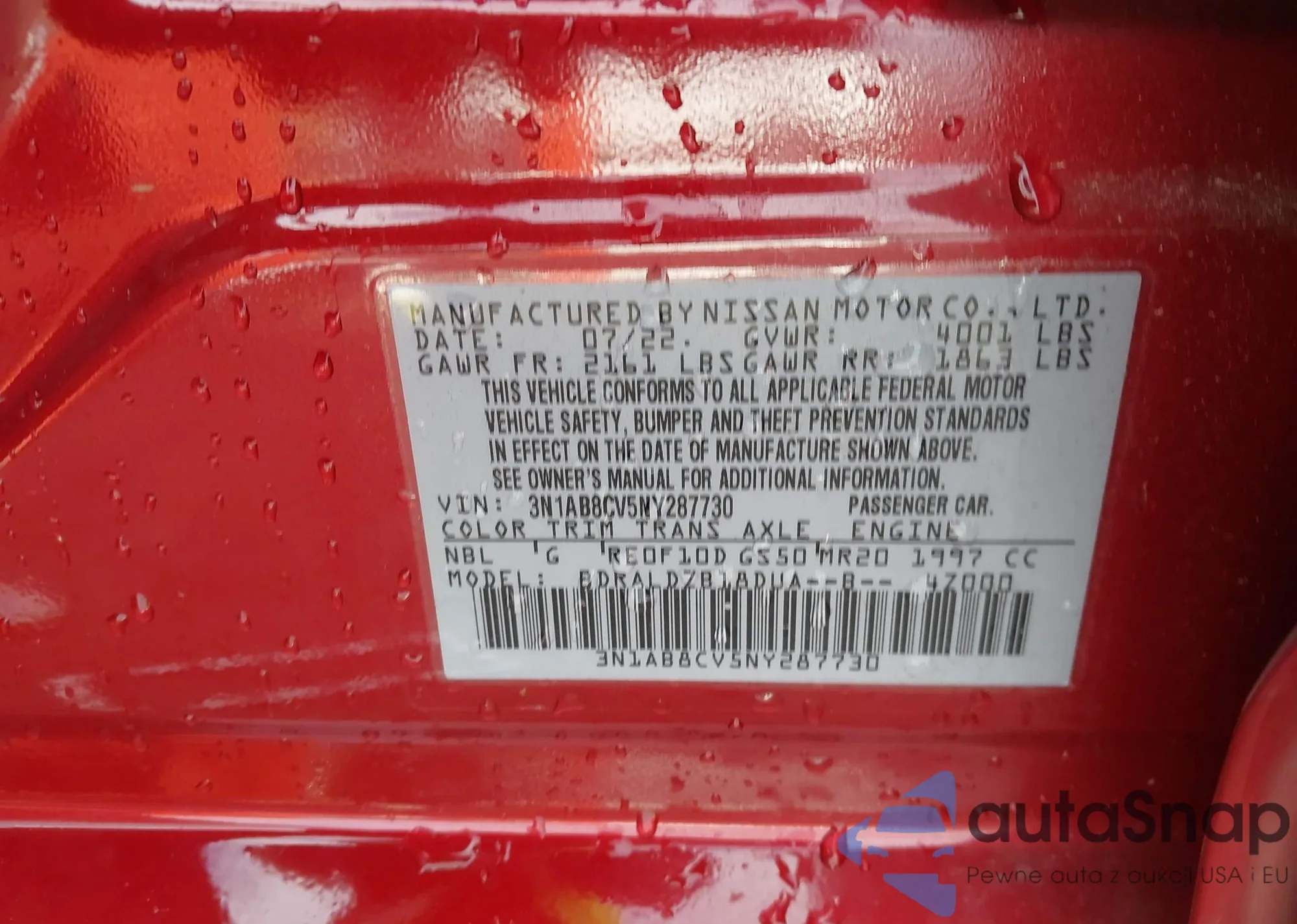 • VIN 3N1AB8CV5NY287730