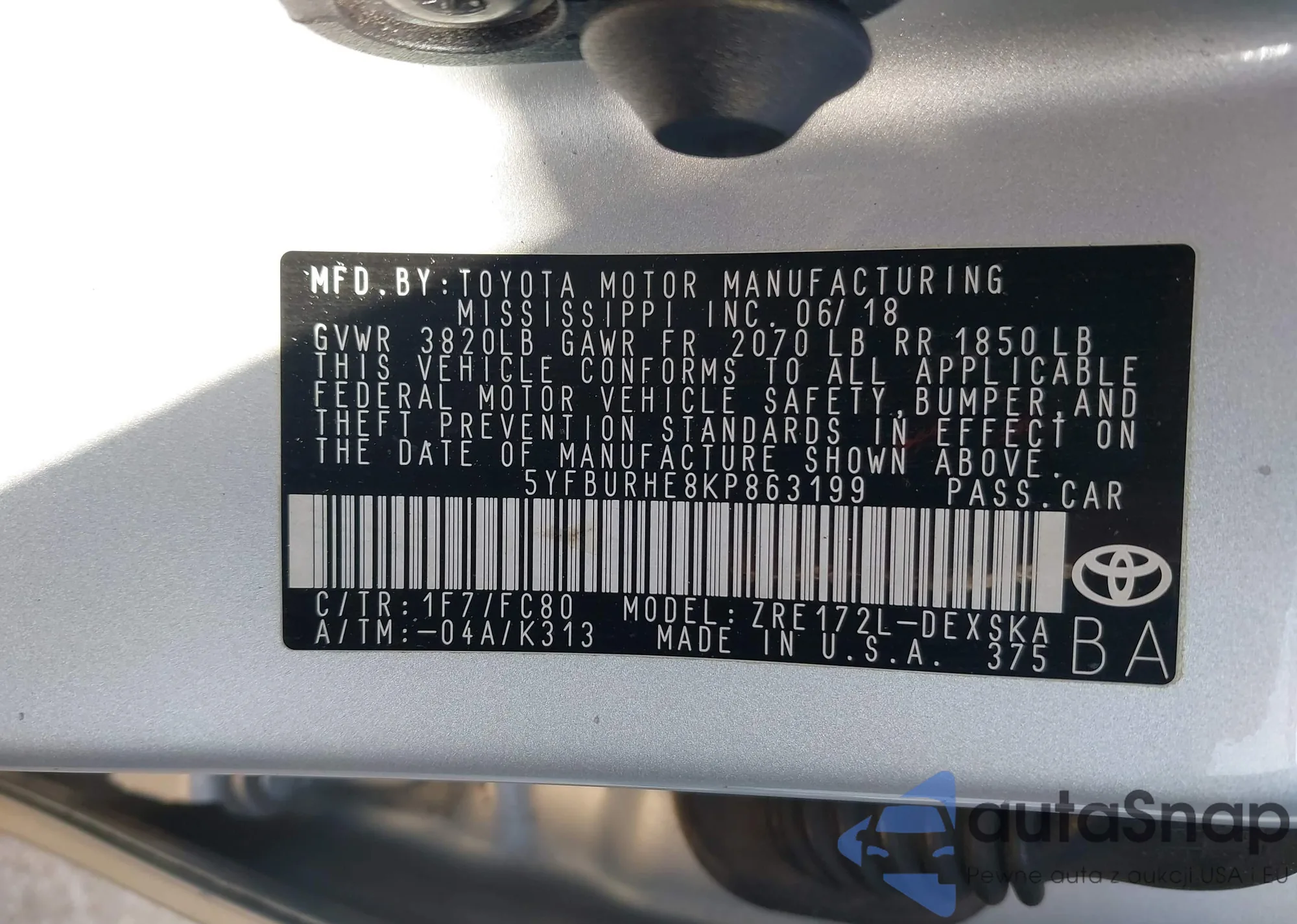 • VIN 5YFBURHE8KP863199