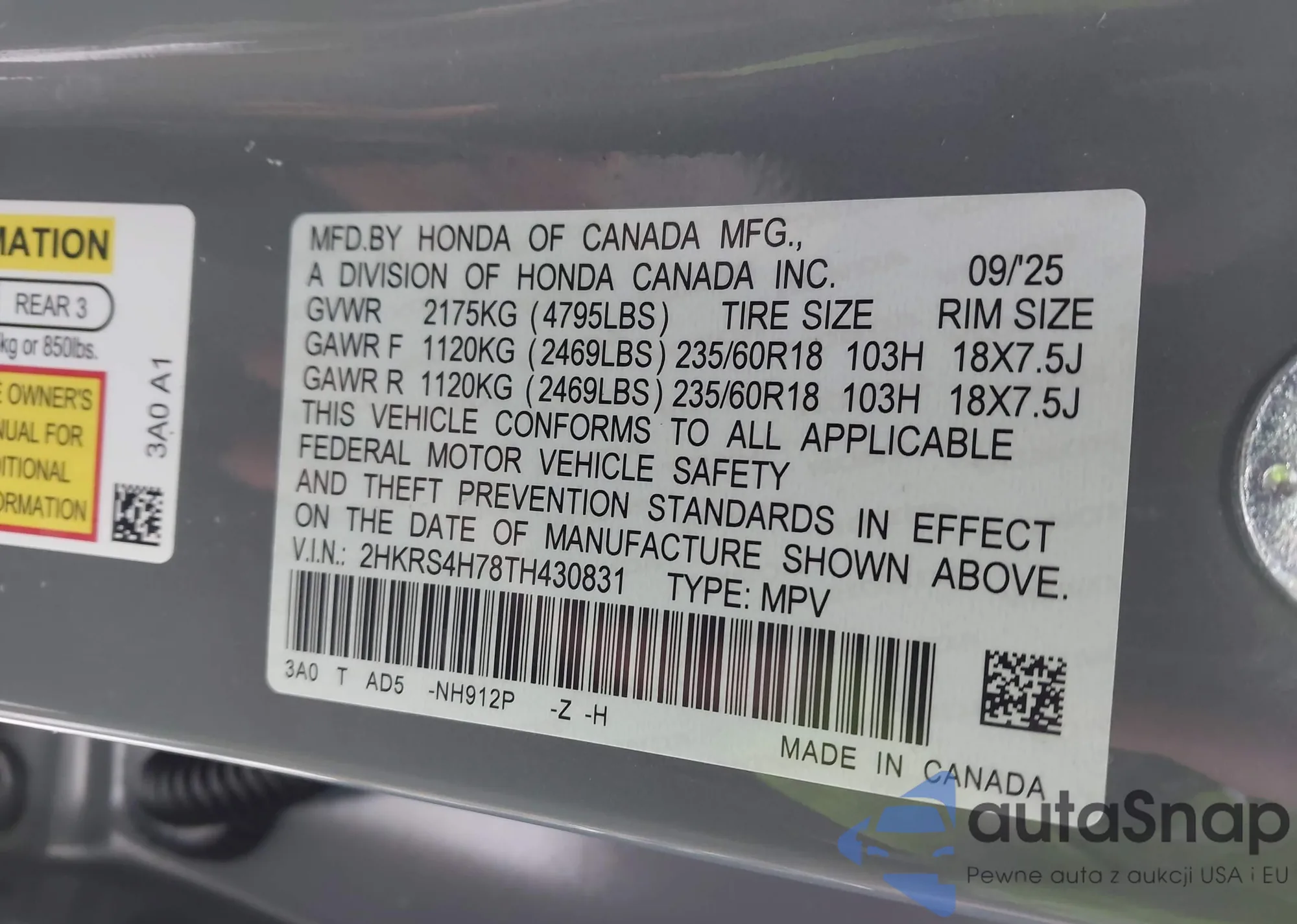 • VIN 5J6RW2H84LL039909