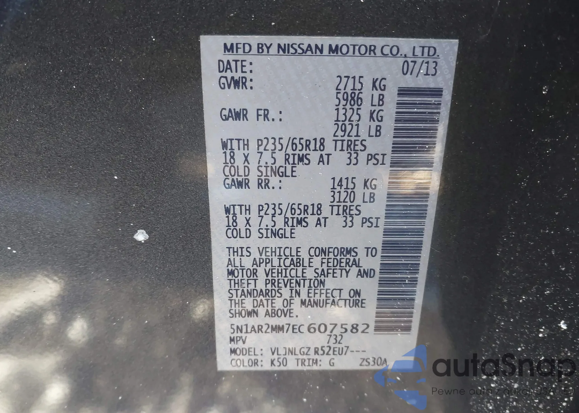 • VIN 5N1AR2MM7EC607582
