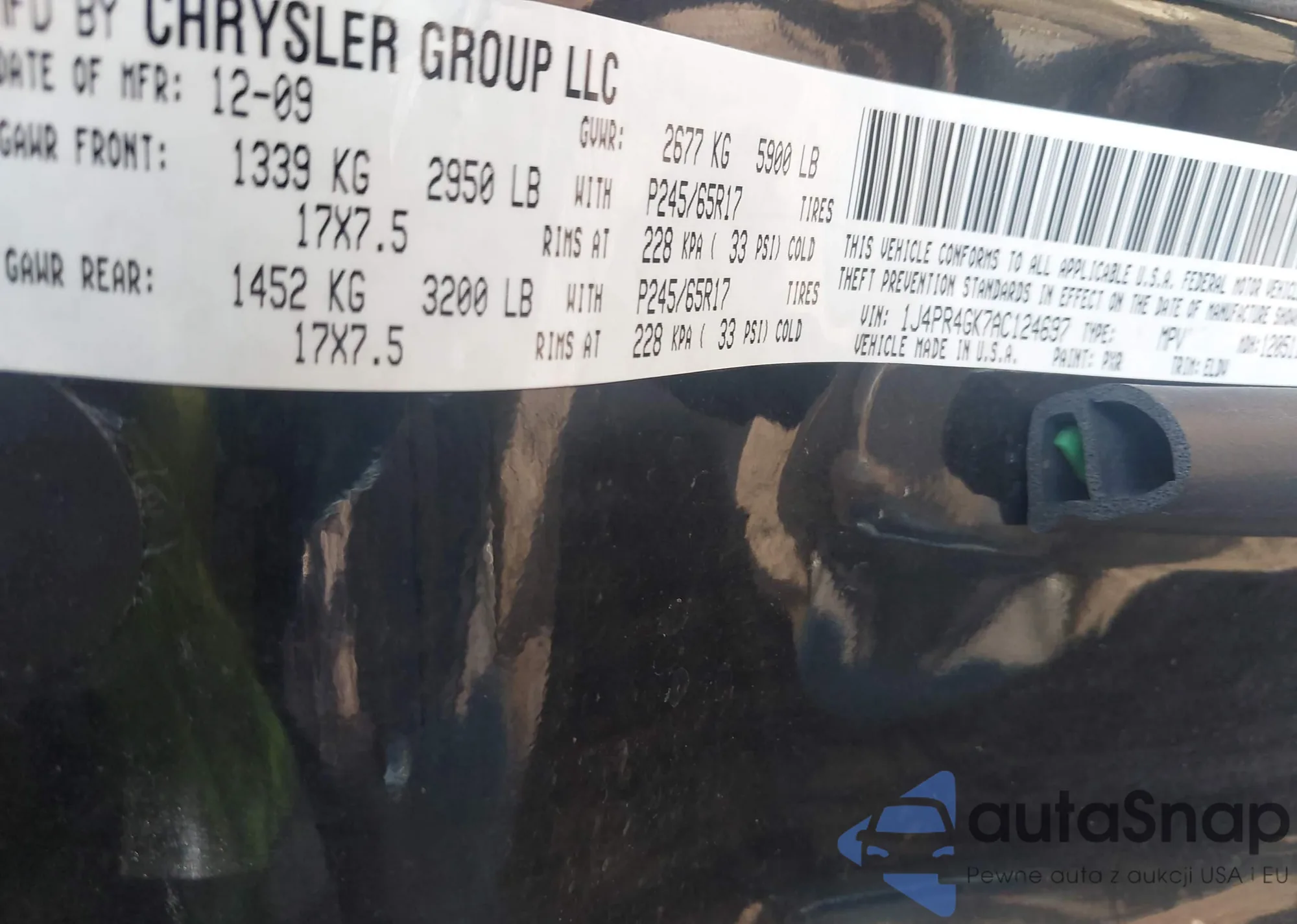 • VIN 1J4PR4GK7AC124697