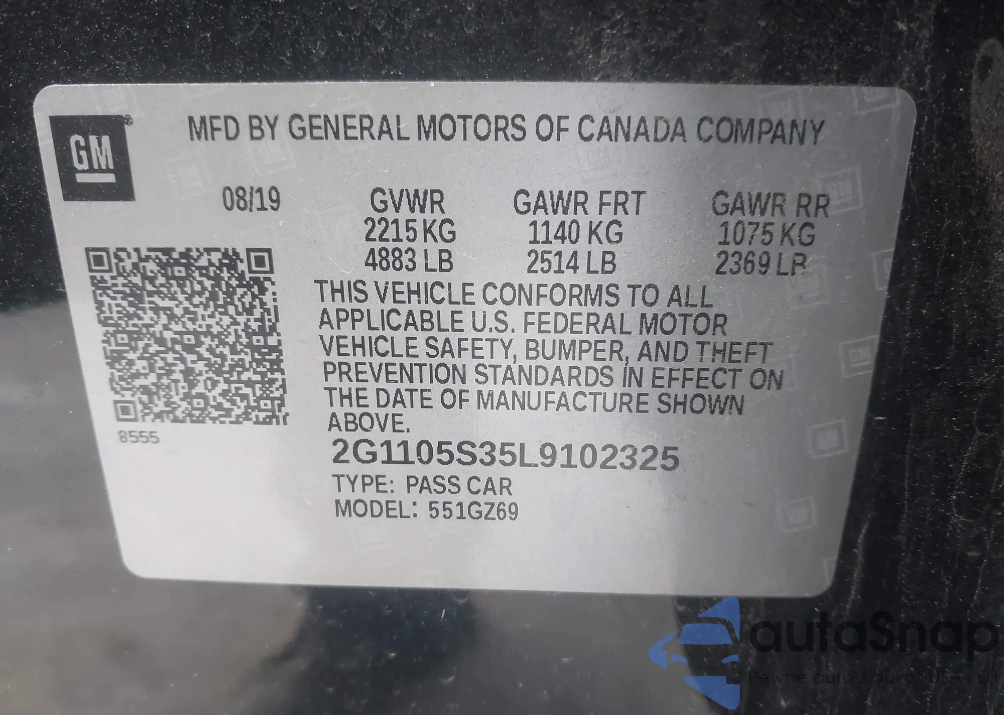 • VIN 2G1105S35L9102325