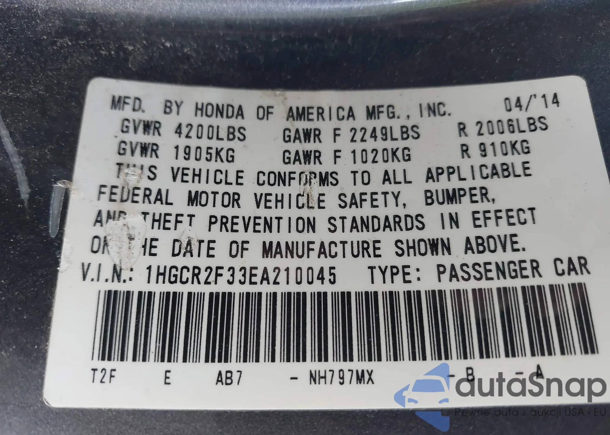 • VIN 1HGCR2F33EA210045