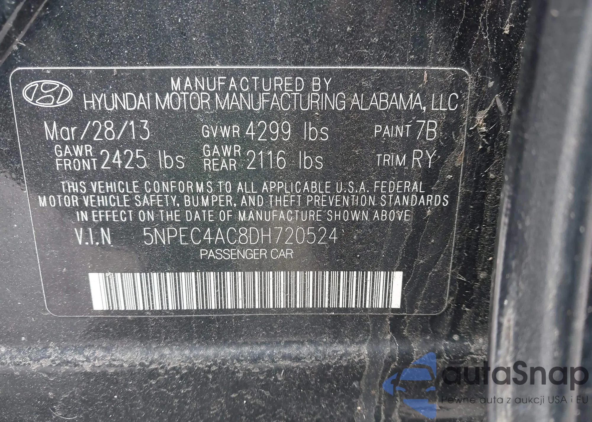 • VIN 5NPEC4AC8DH720524