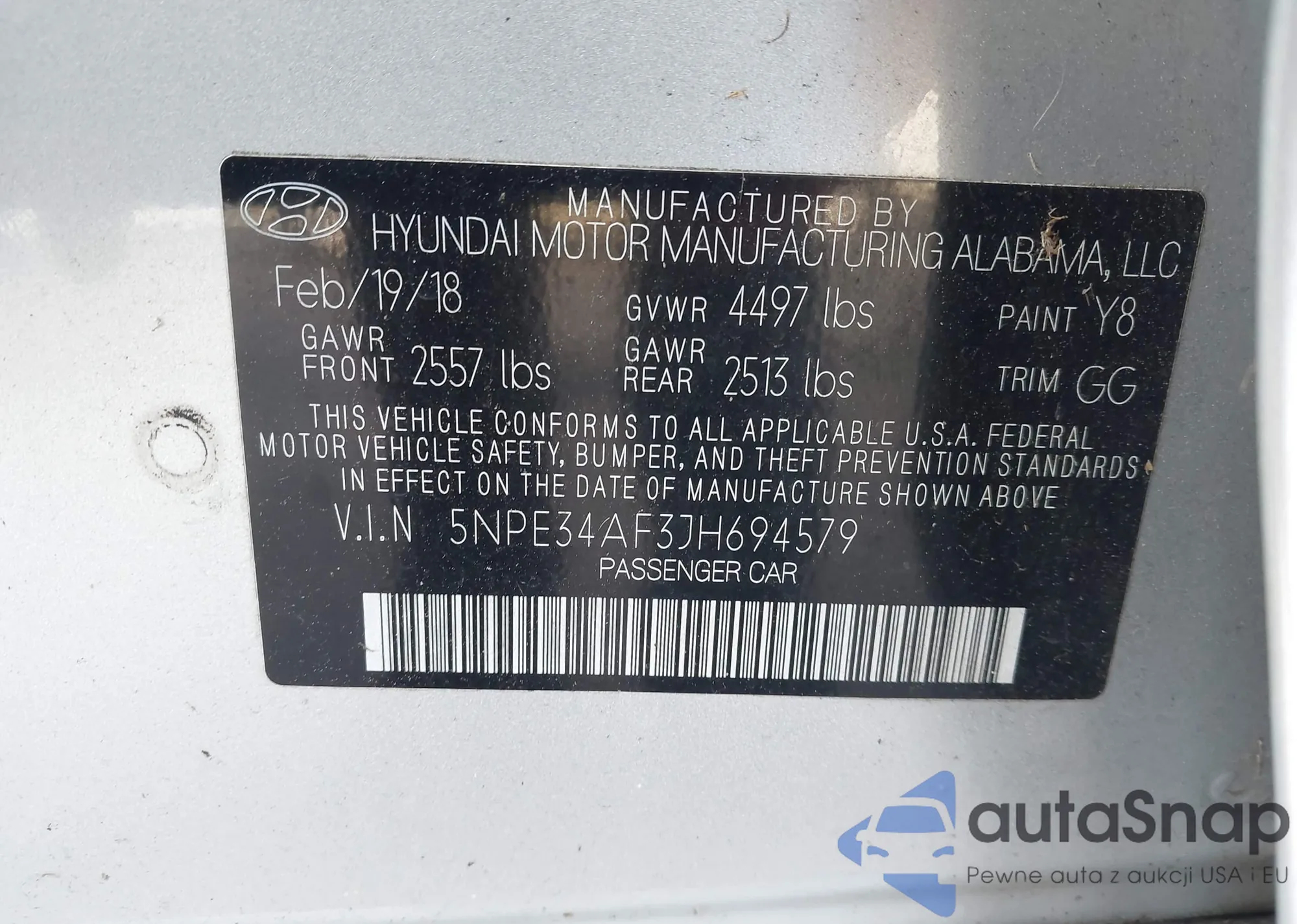• VIN 5NPE34AF3JH694579