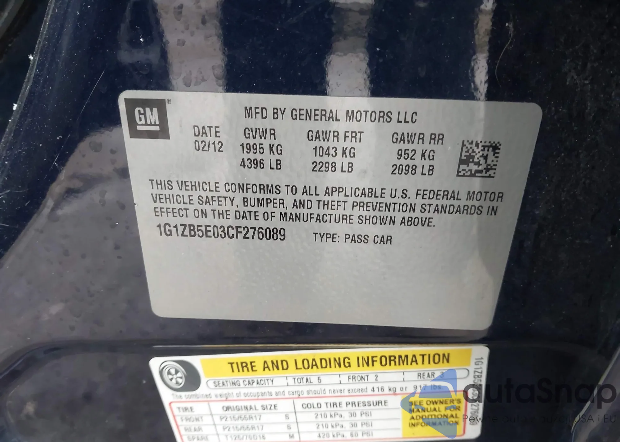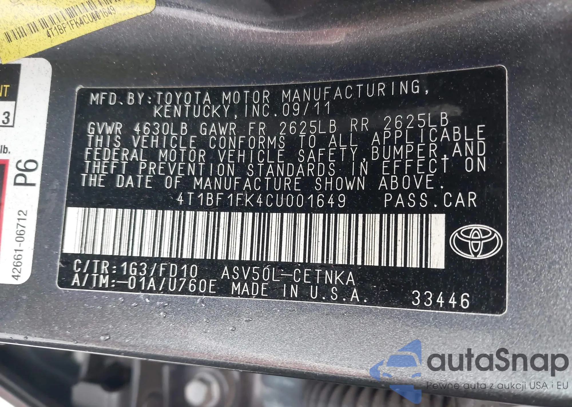 • VIN 4T1BF1FK4CU001649